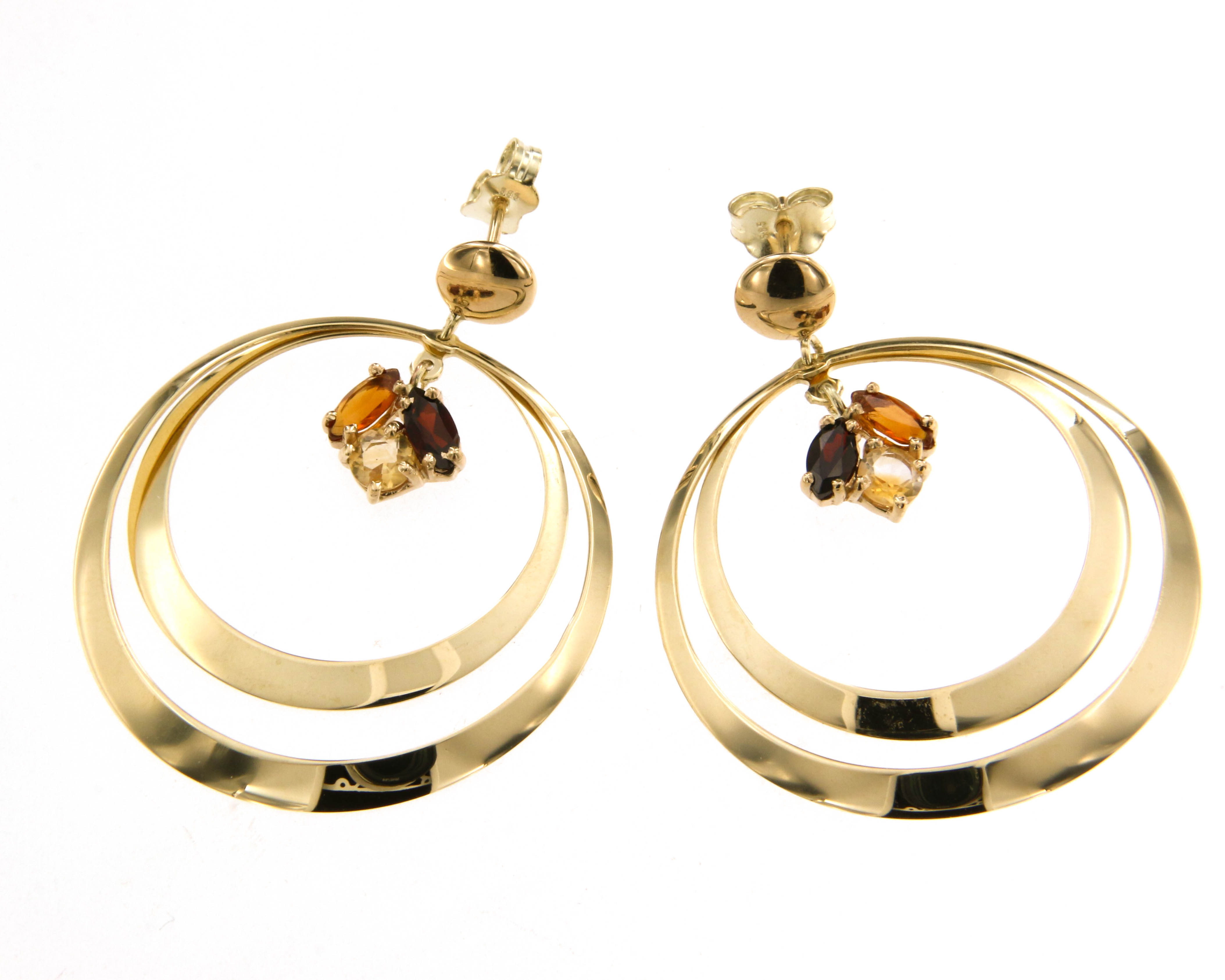 Обеци от “Jacklin hugasian” в жълто злато гланц с гранати,топази и цитрини. . Произход Италия.