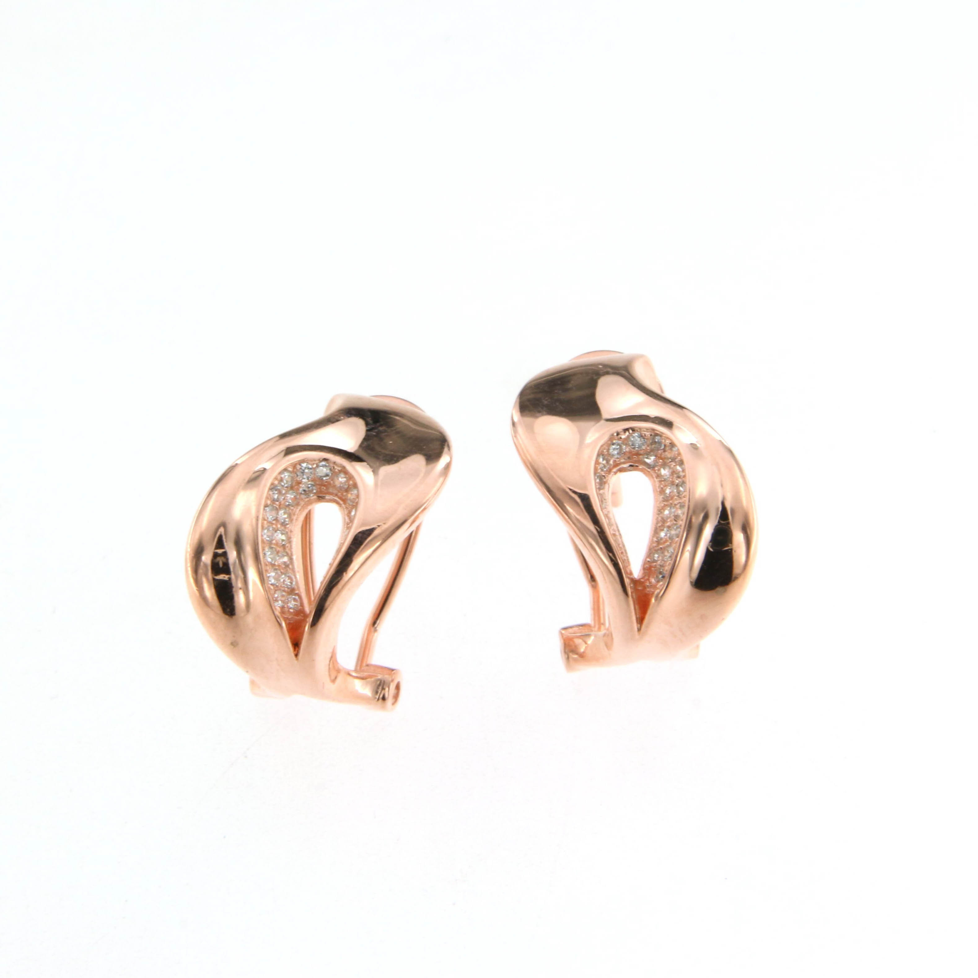 Обеци от “Jacklin hugasian” в розово сребро с цирконии.
