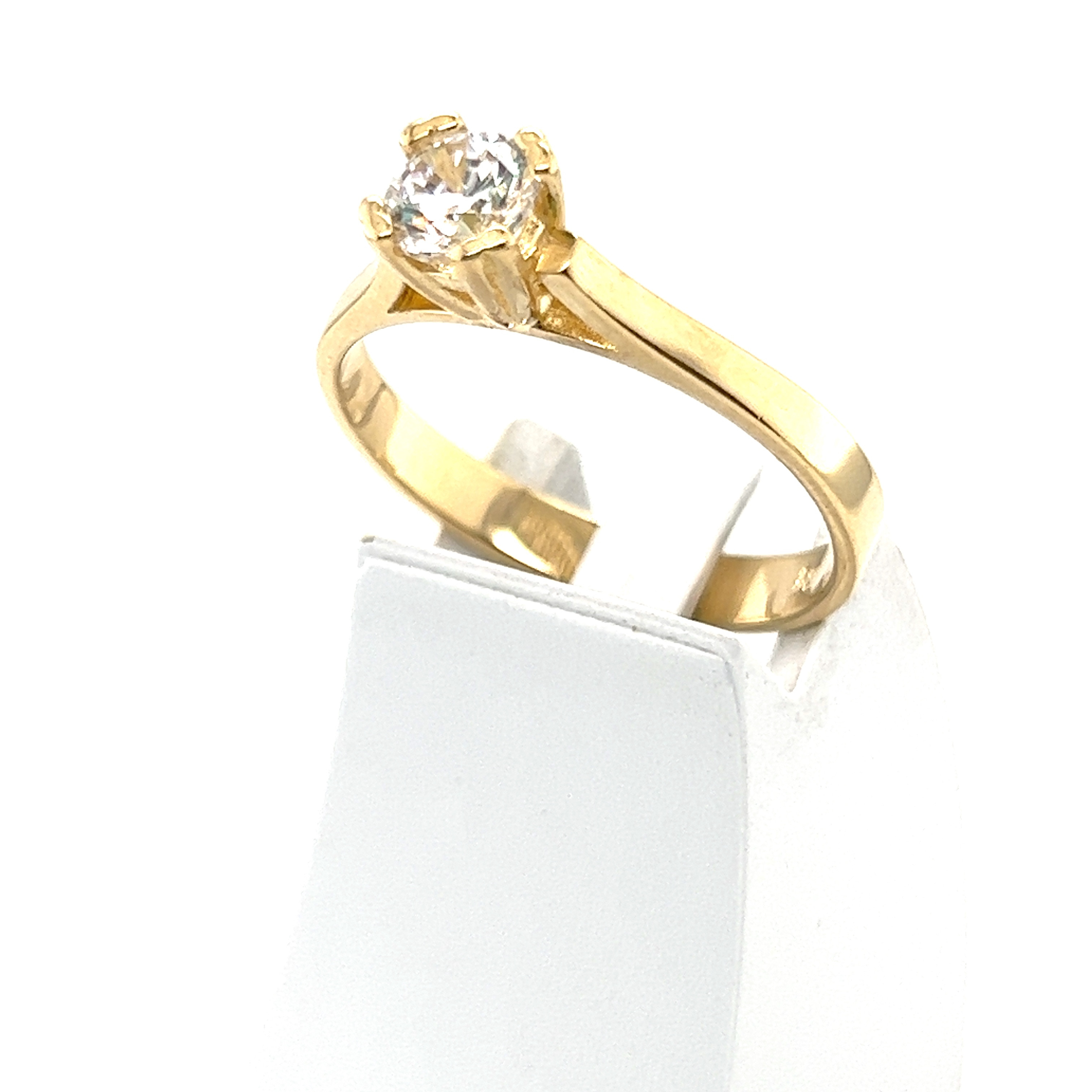 Пръстен от “Jacklin hugasian” в жълто злато с циркони.