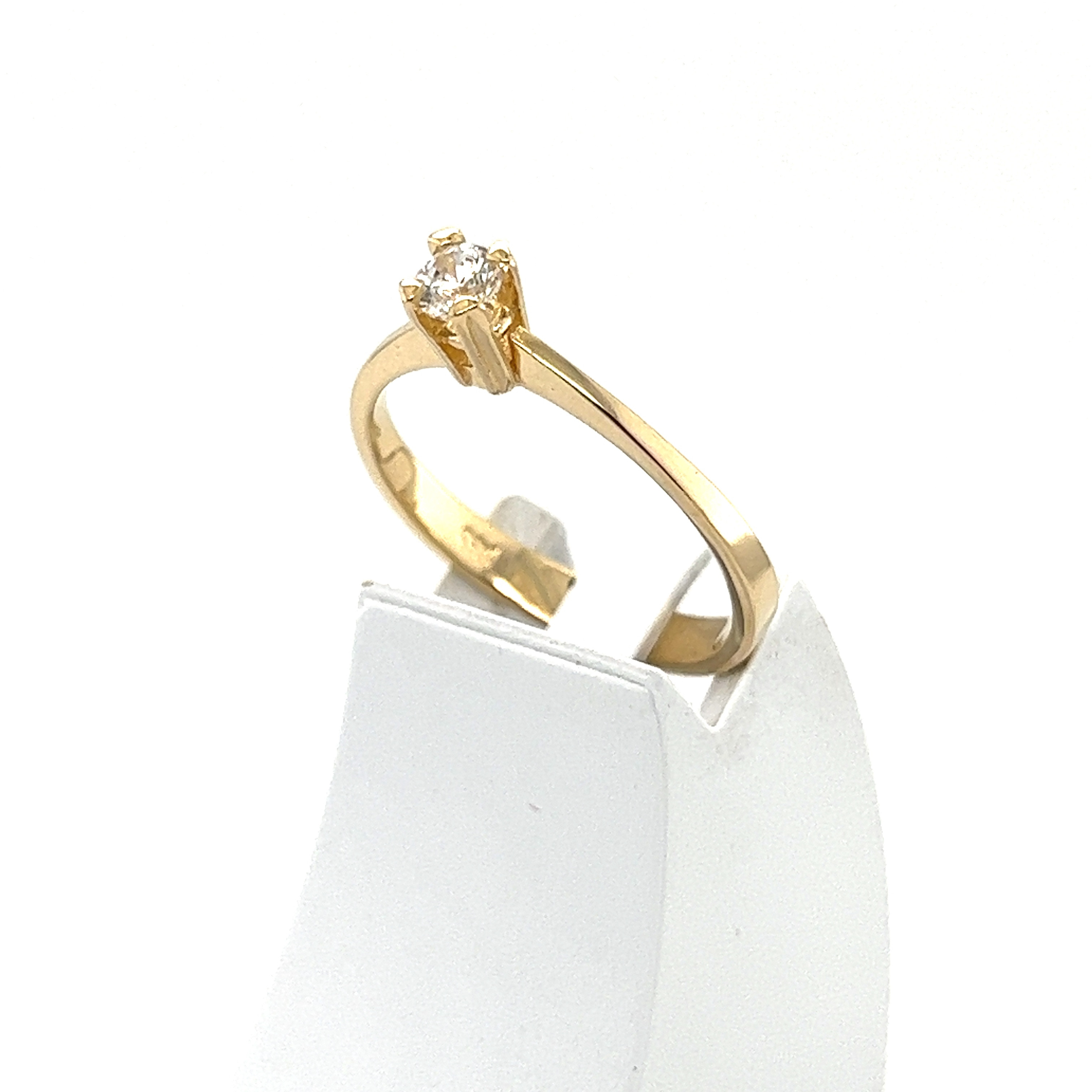 Пръстен от “Jacklin hugasian” в жълто злато с циркони.