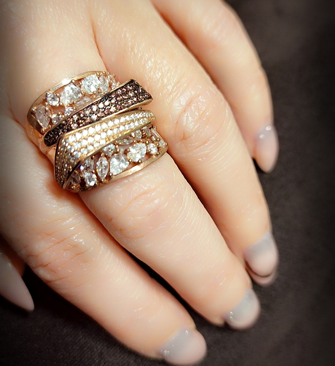 Пръстен от "Jacklin hugasian" в розово сребро с циркони и опушен топаз