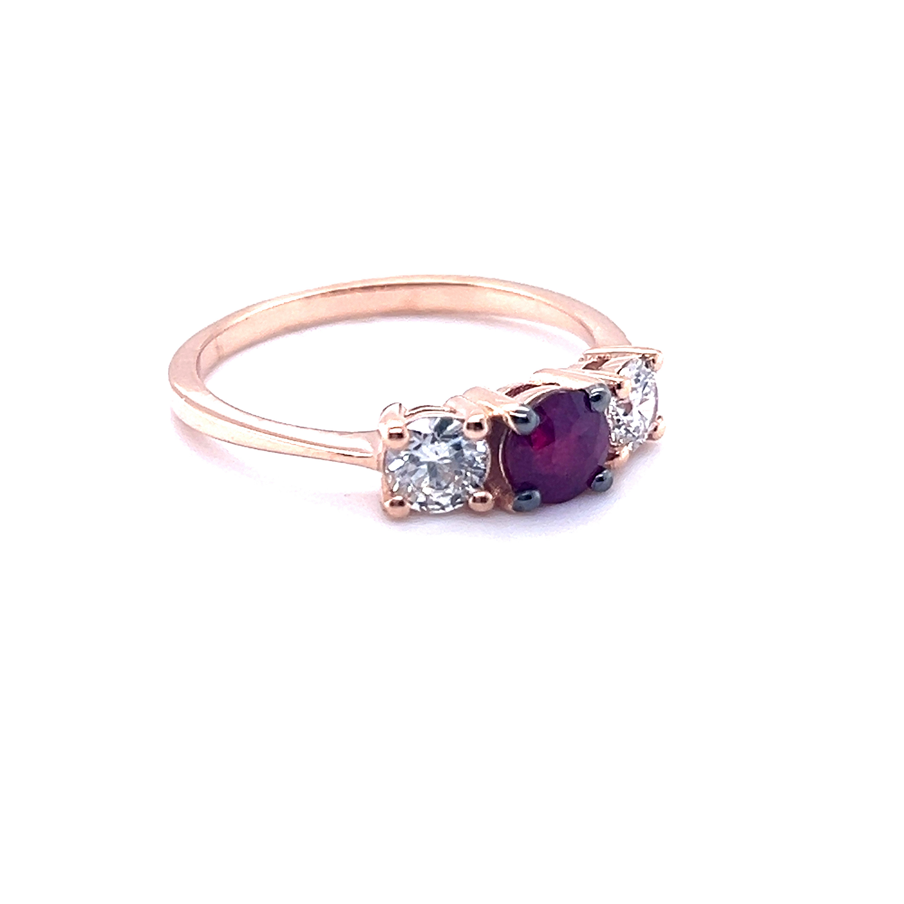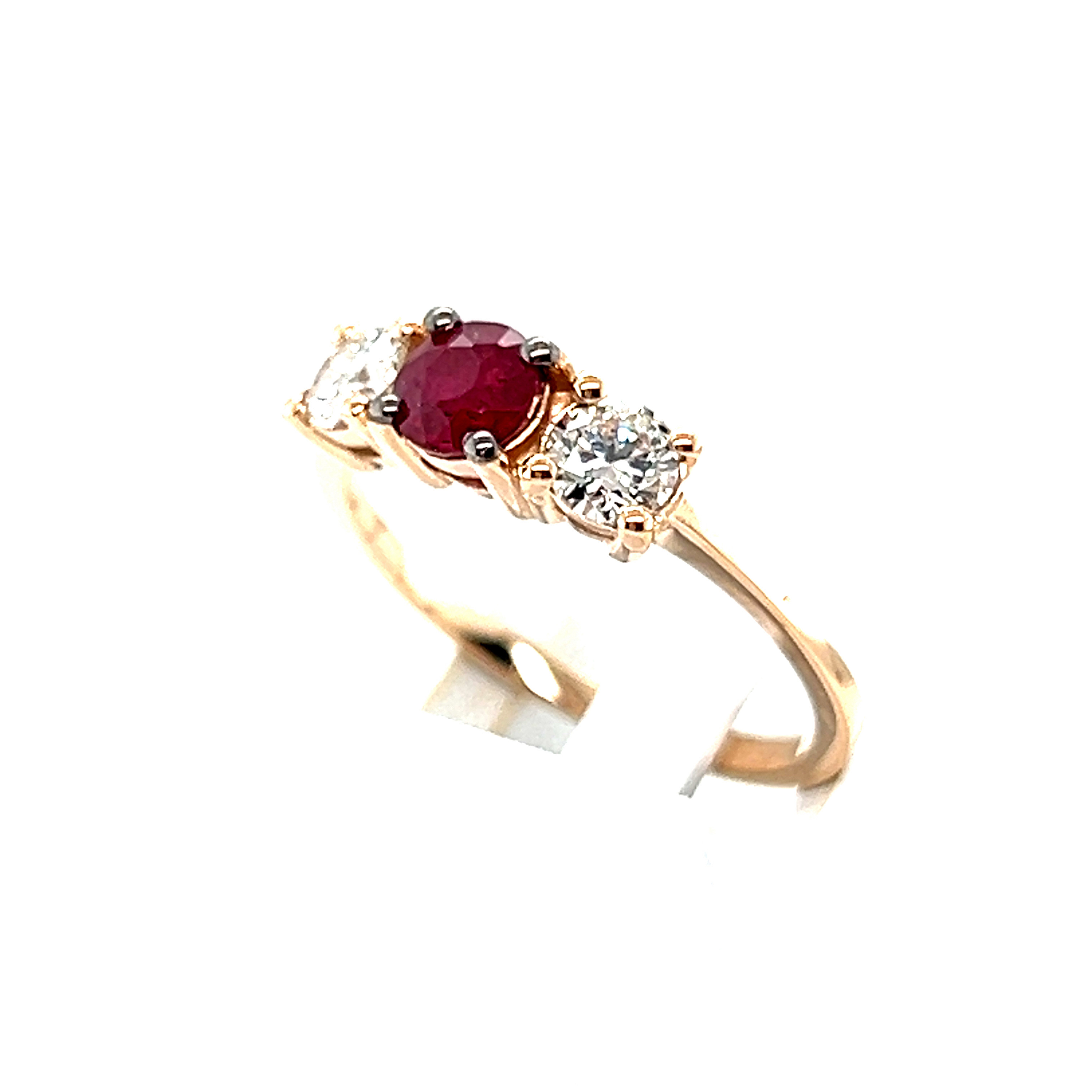 Пръстен от "Jacklin hugasian" в розово злато с рубин и диаманти.