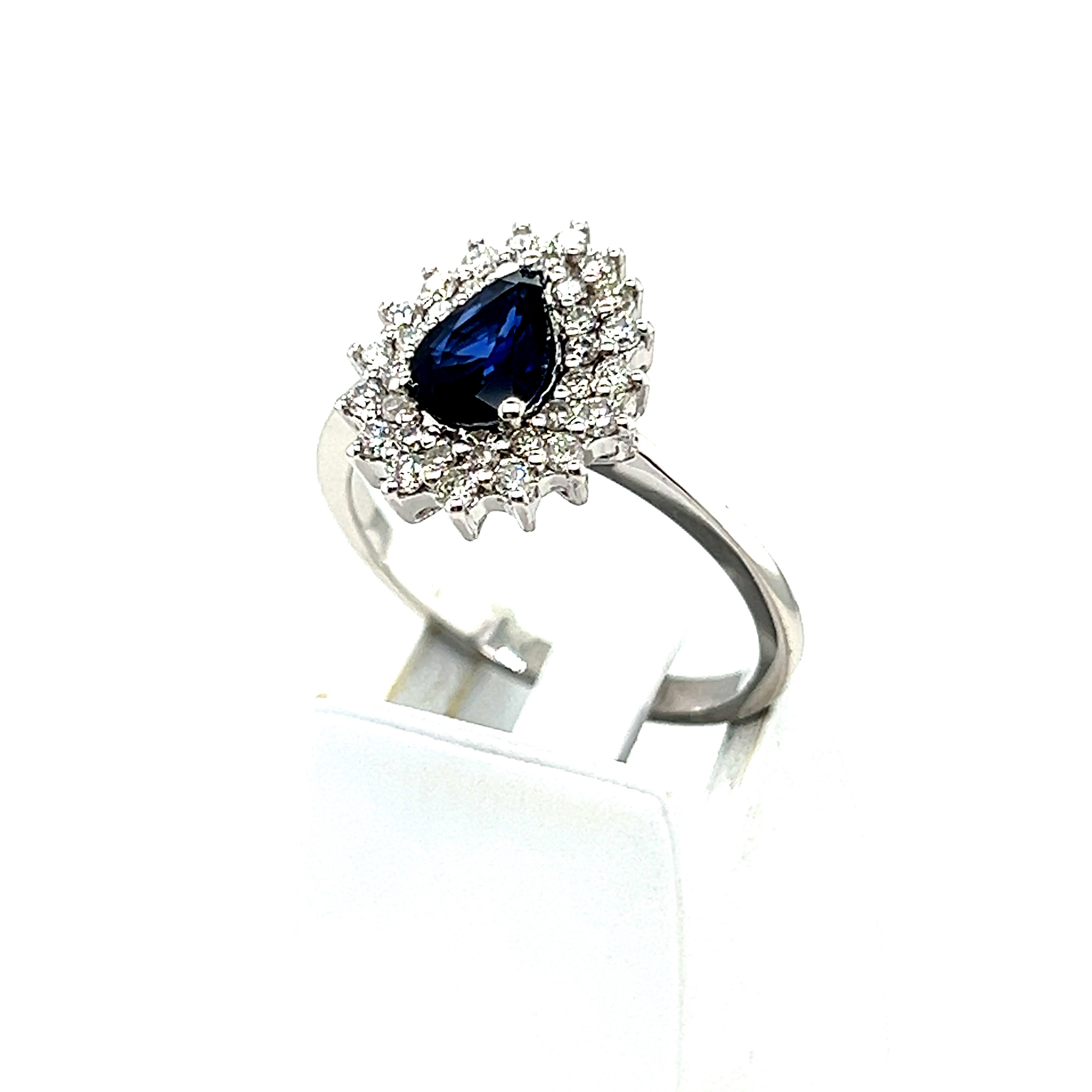 Пръстен от "Jacklin hugasian" в бяло злато със сапфир и диаманти.