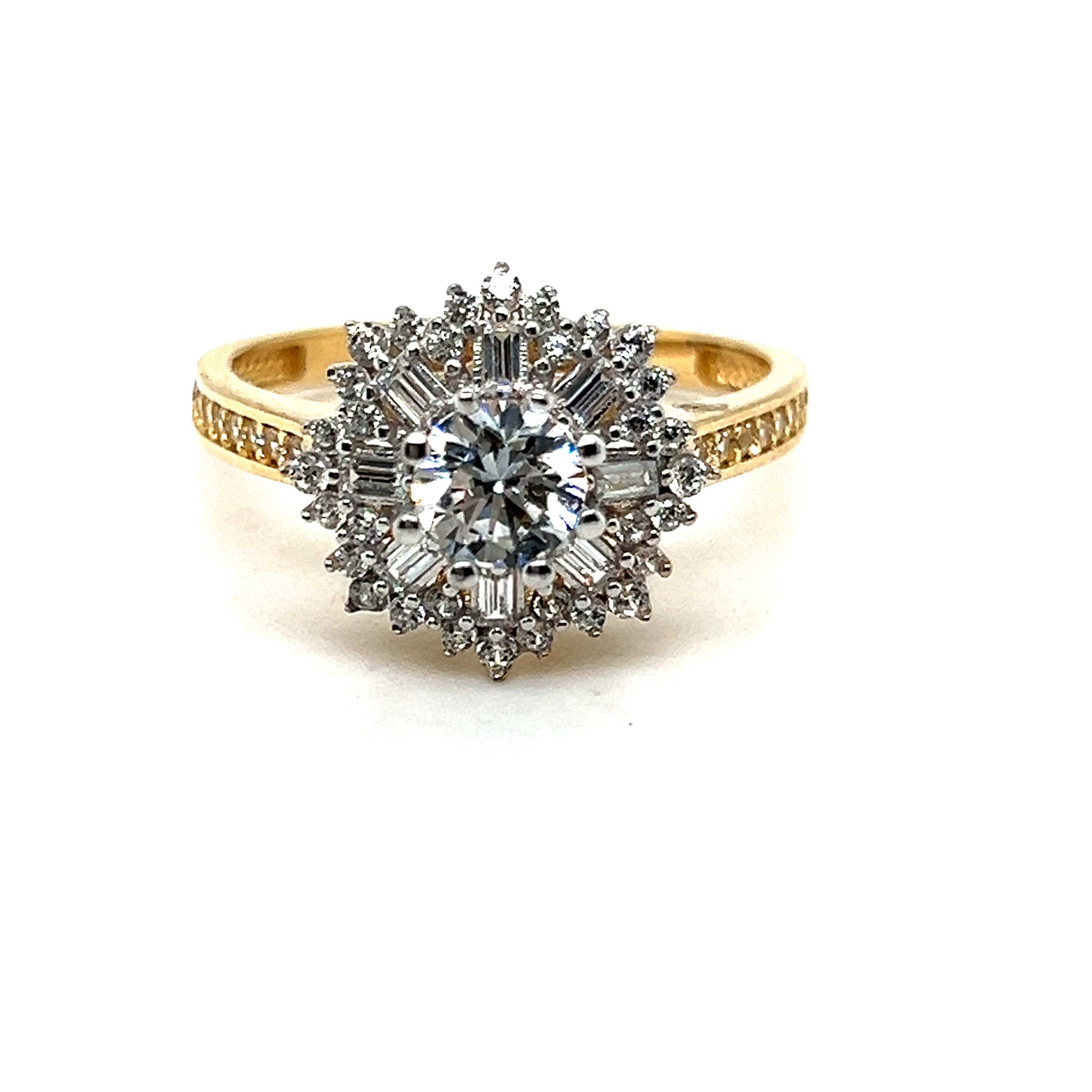 Пръстен от “Jacklin hugasian” в жълто злато с цирконии.