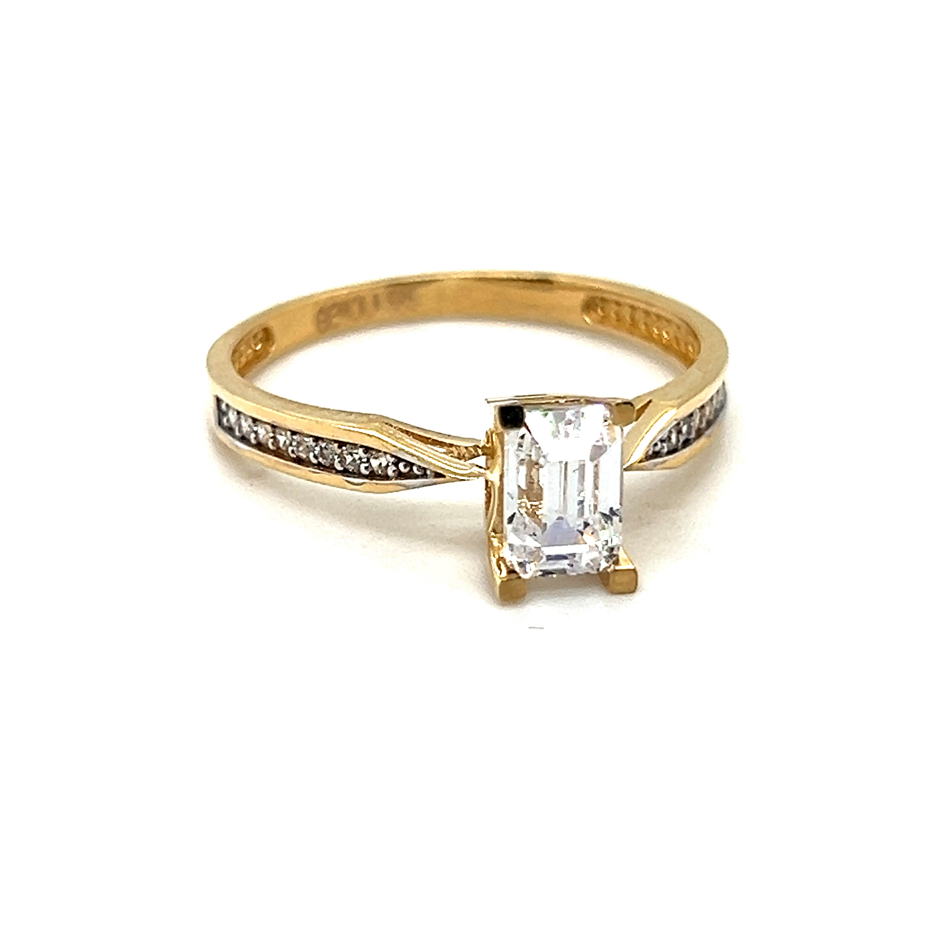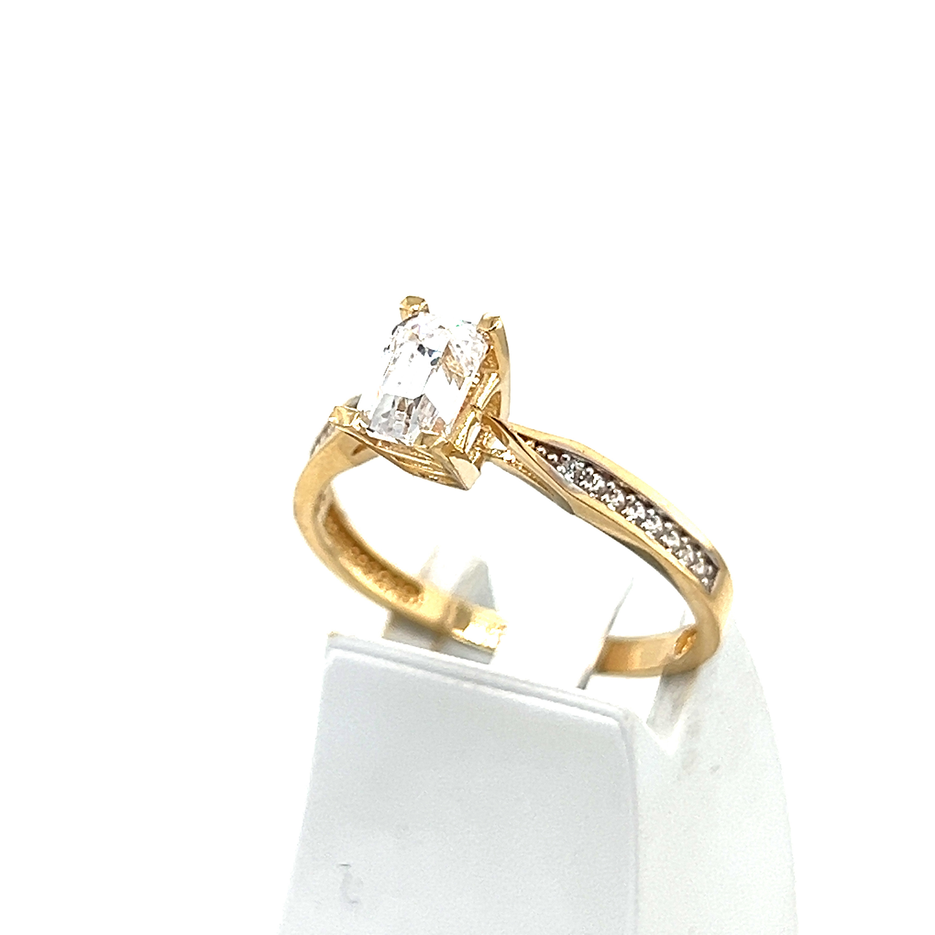 Пръстен от “Jacklin hugasian” в жълто злато с цирконии.