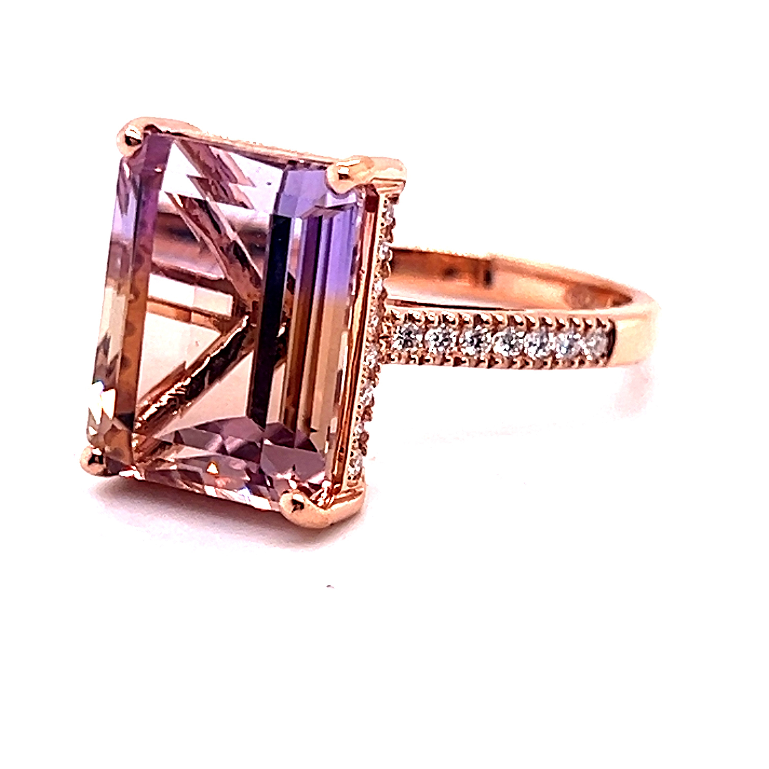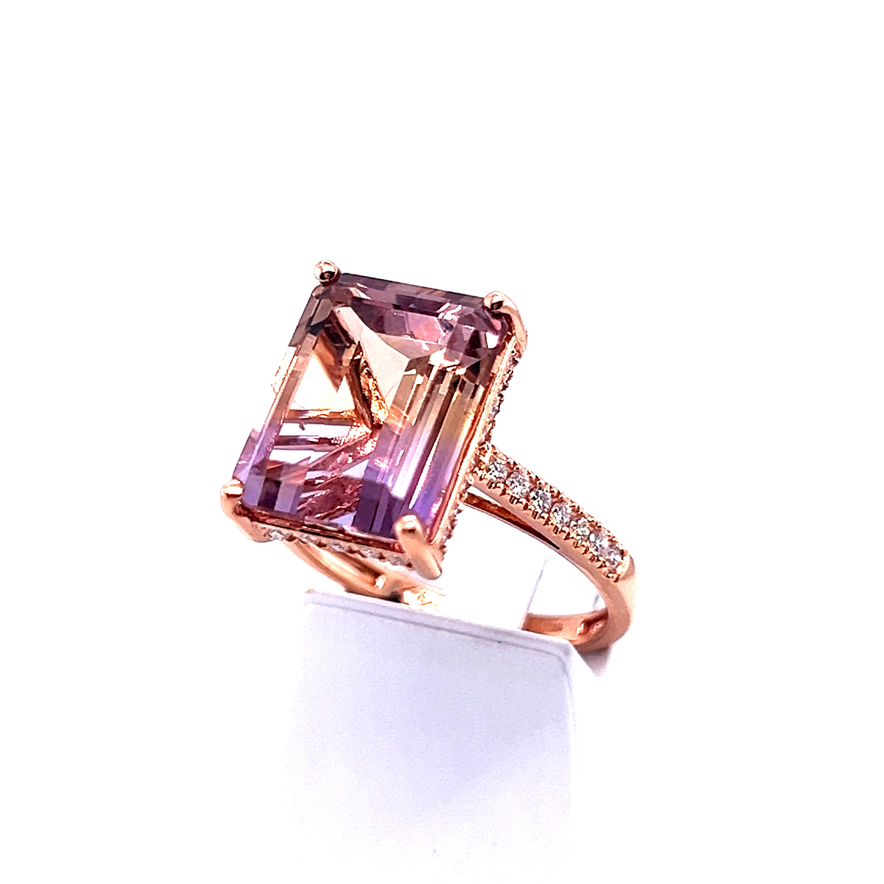 Пръстен от ''Jacklin hugasian" в розово злато с аметрин и диаманти.