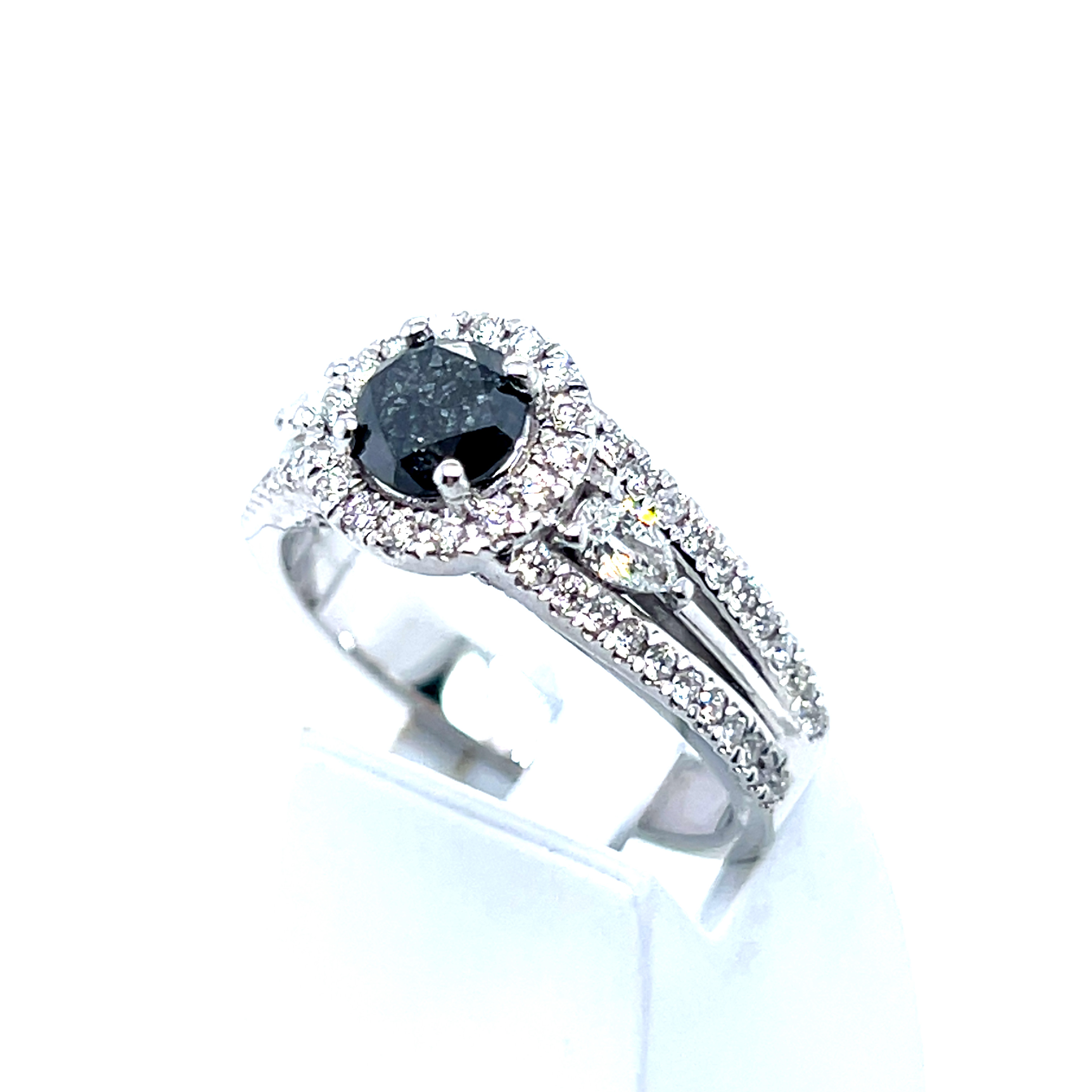 Пръстен от "Jacklin hugasian" в бяло злато с черен и бял диамант.