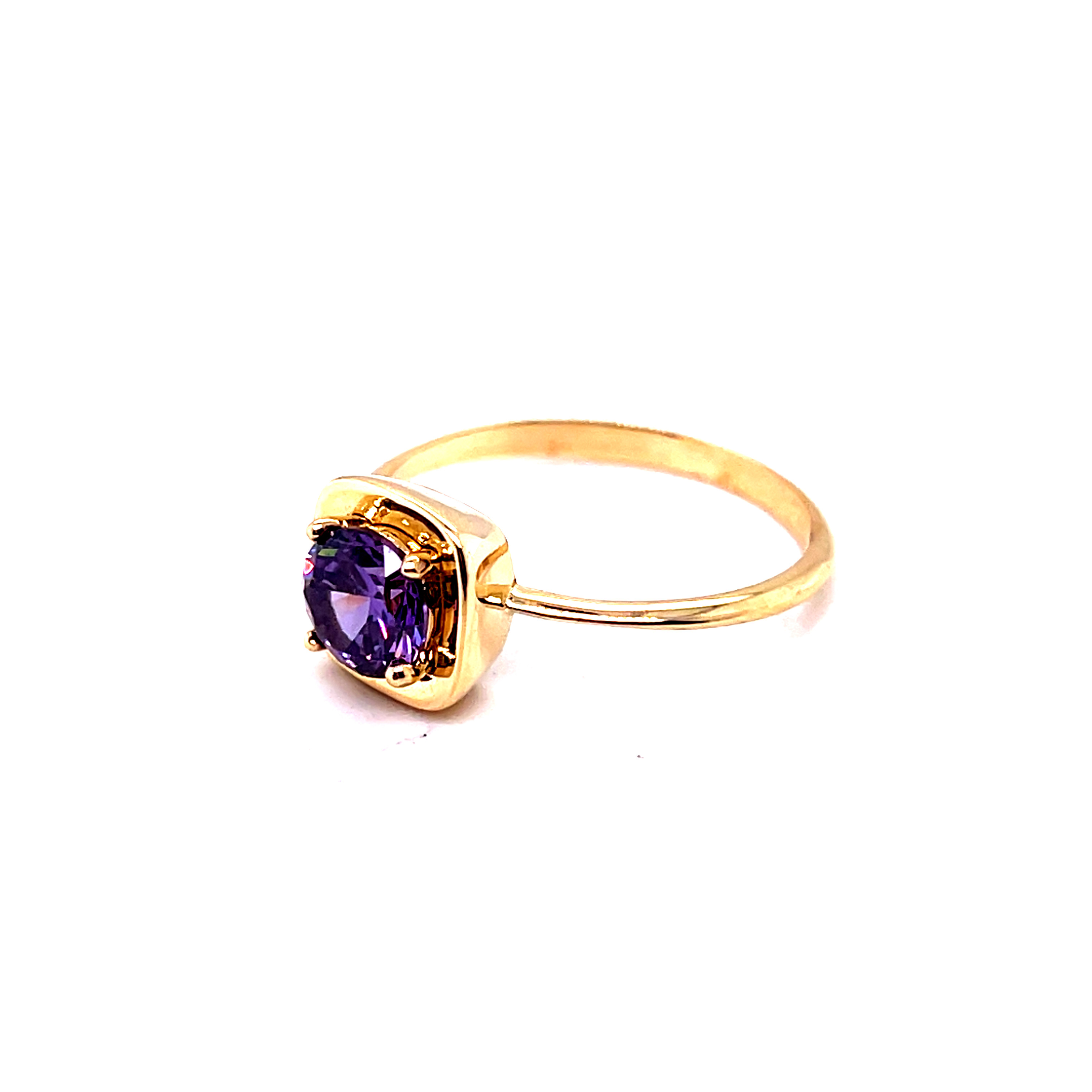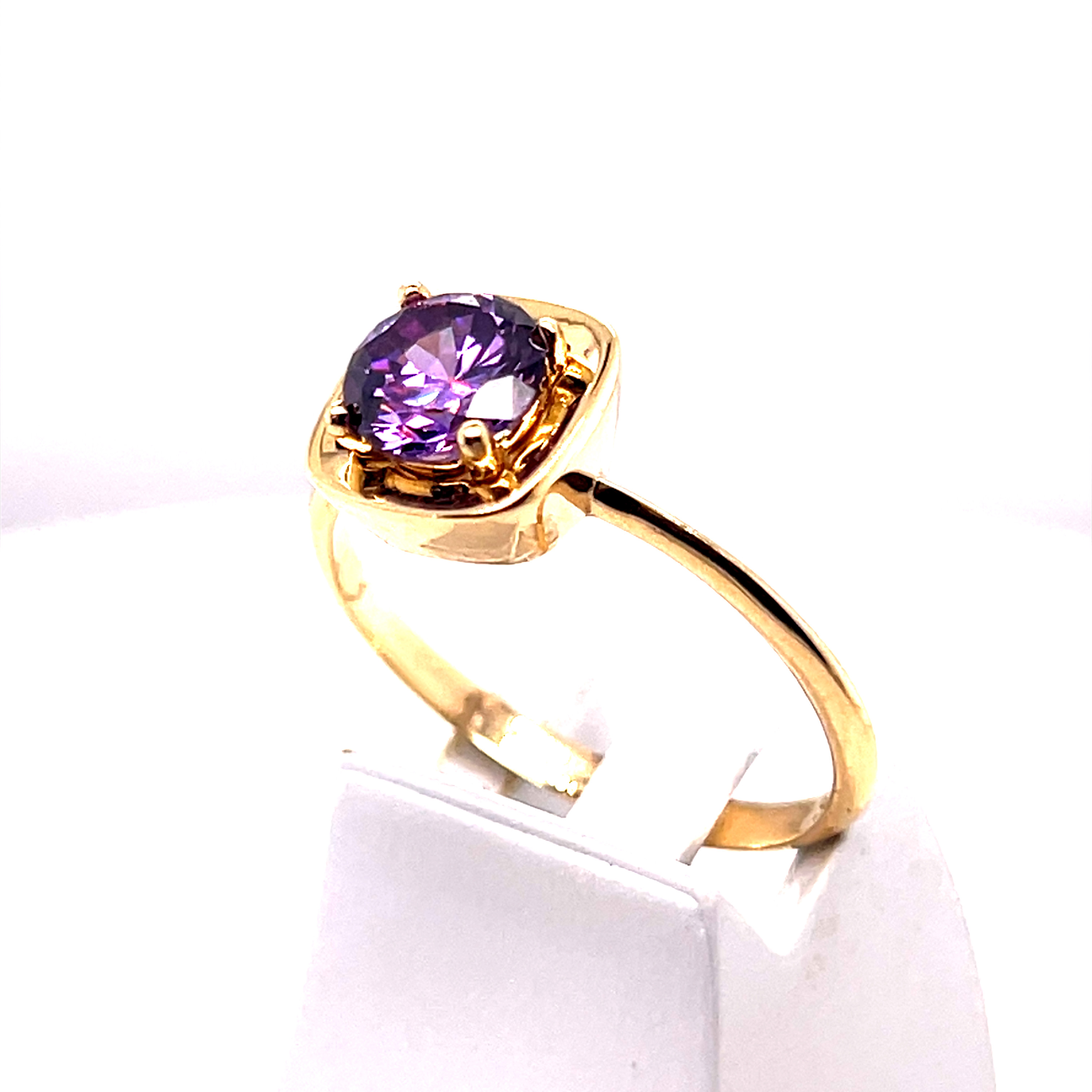 Пръстен от “Jacklin hugasian” в жълто злато със синтетичен аметист.