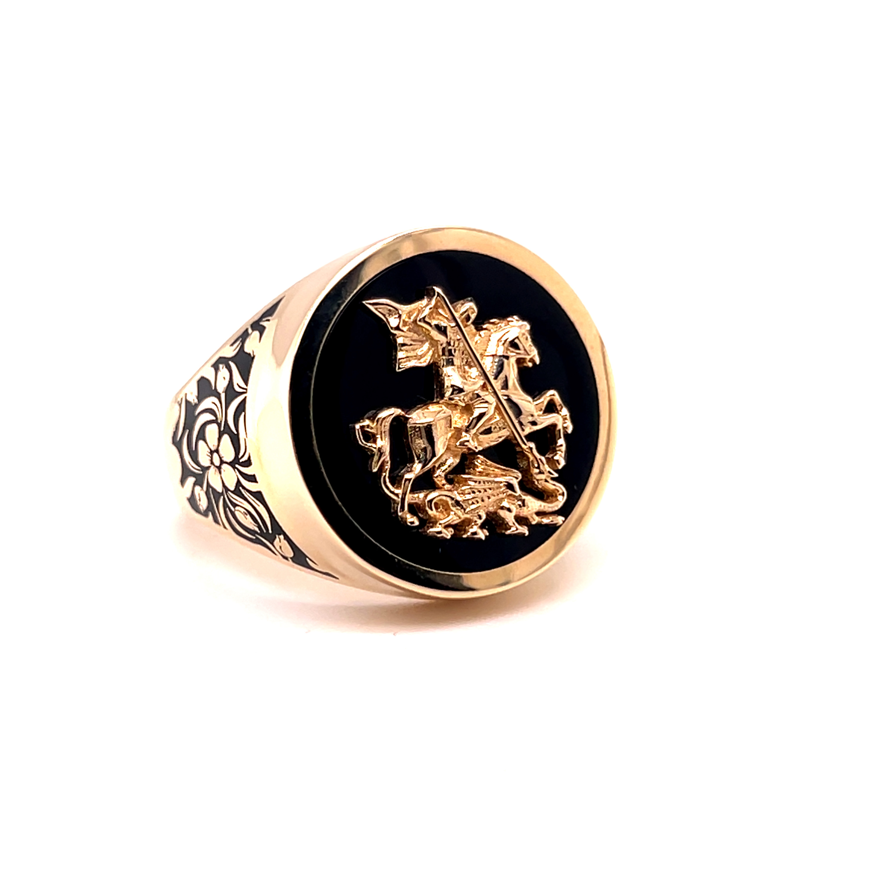 Мъжки пръстен от "Jacklin hugasian" в жълто злато с оникс и емайл.
