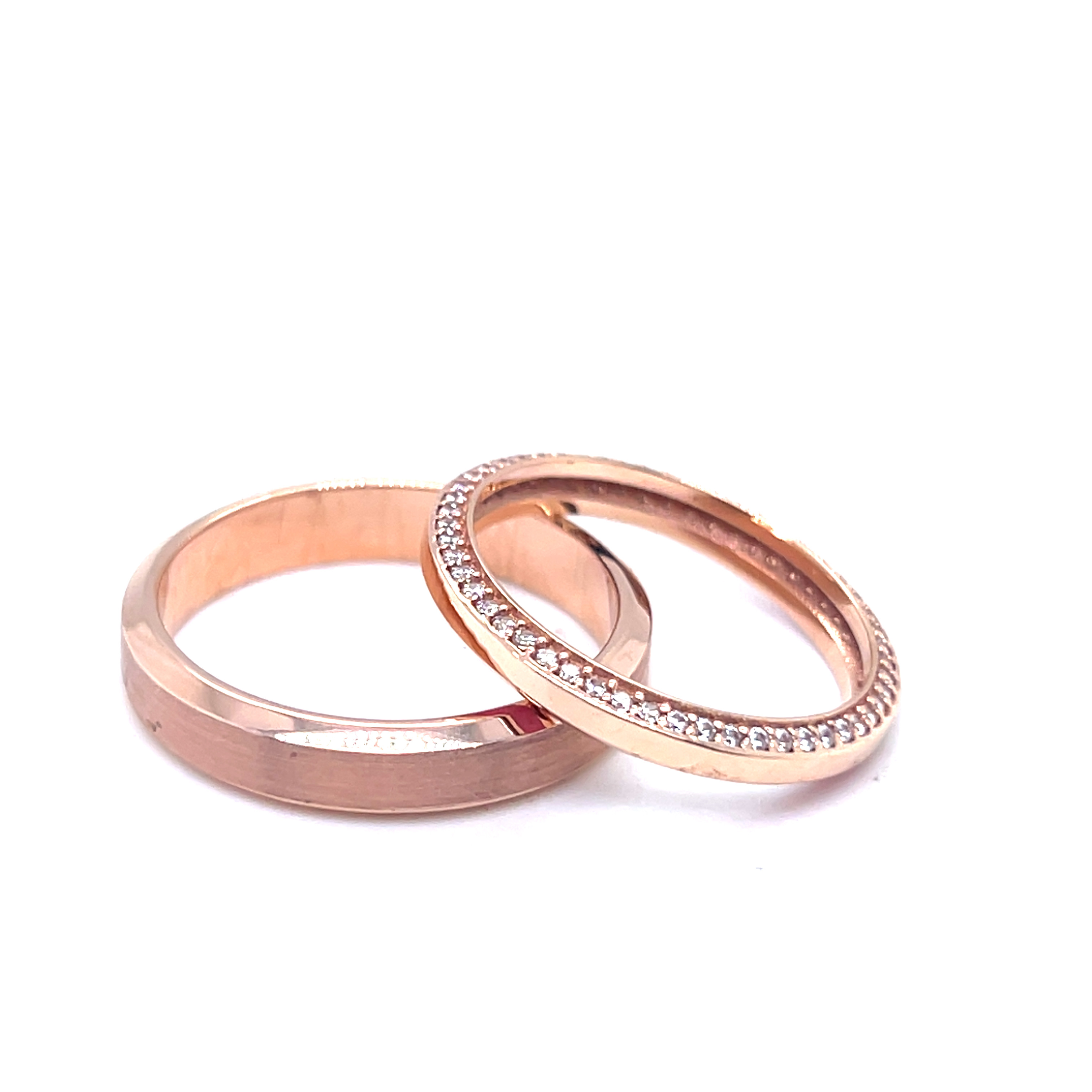 Венчални халки от "Jacklin hugasian" в розово злато с циркони