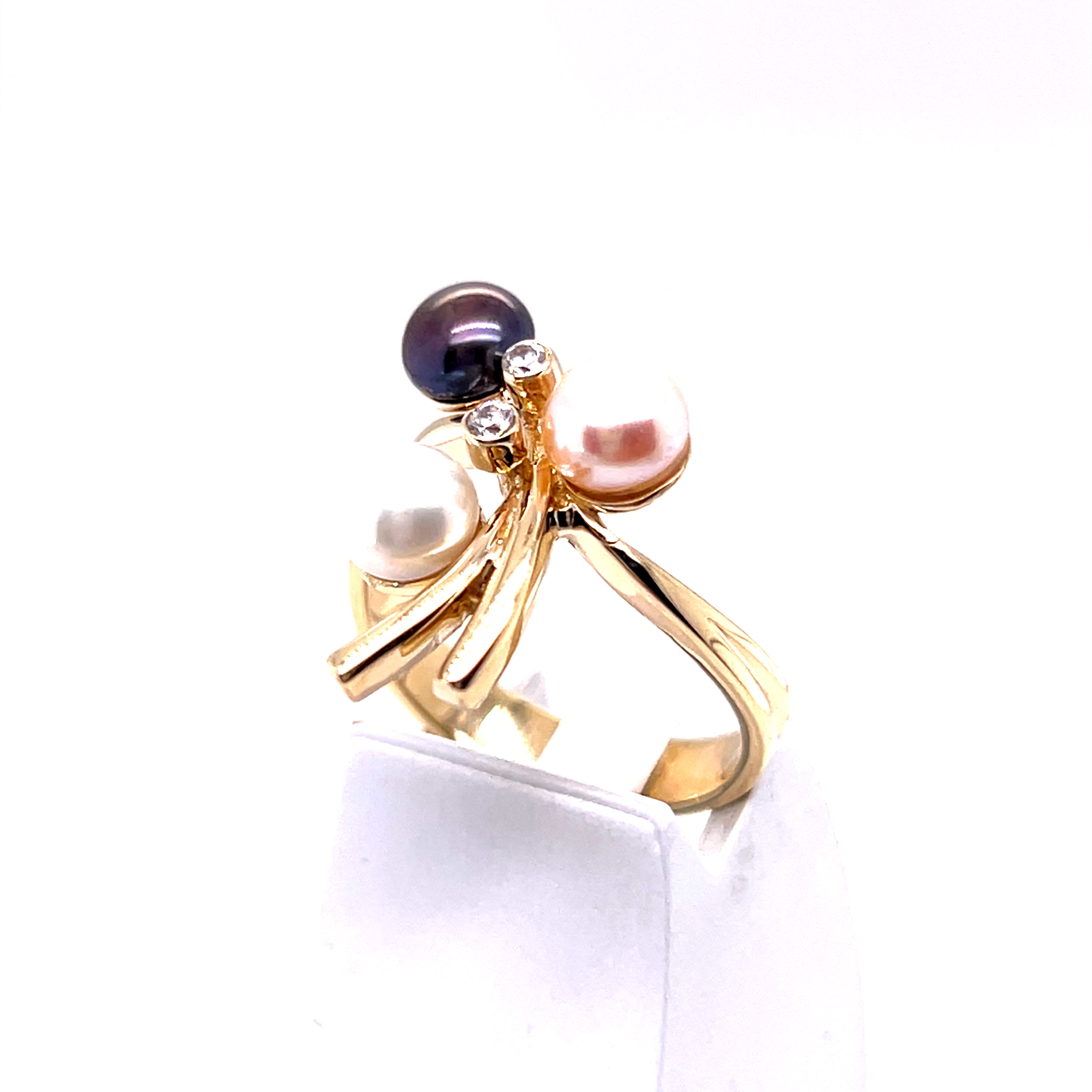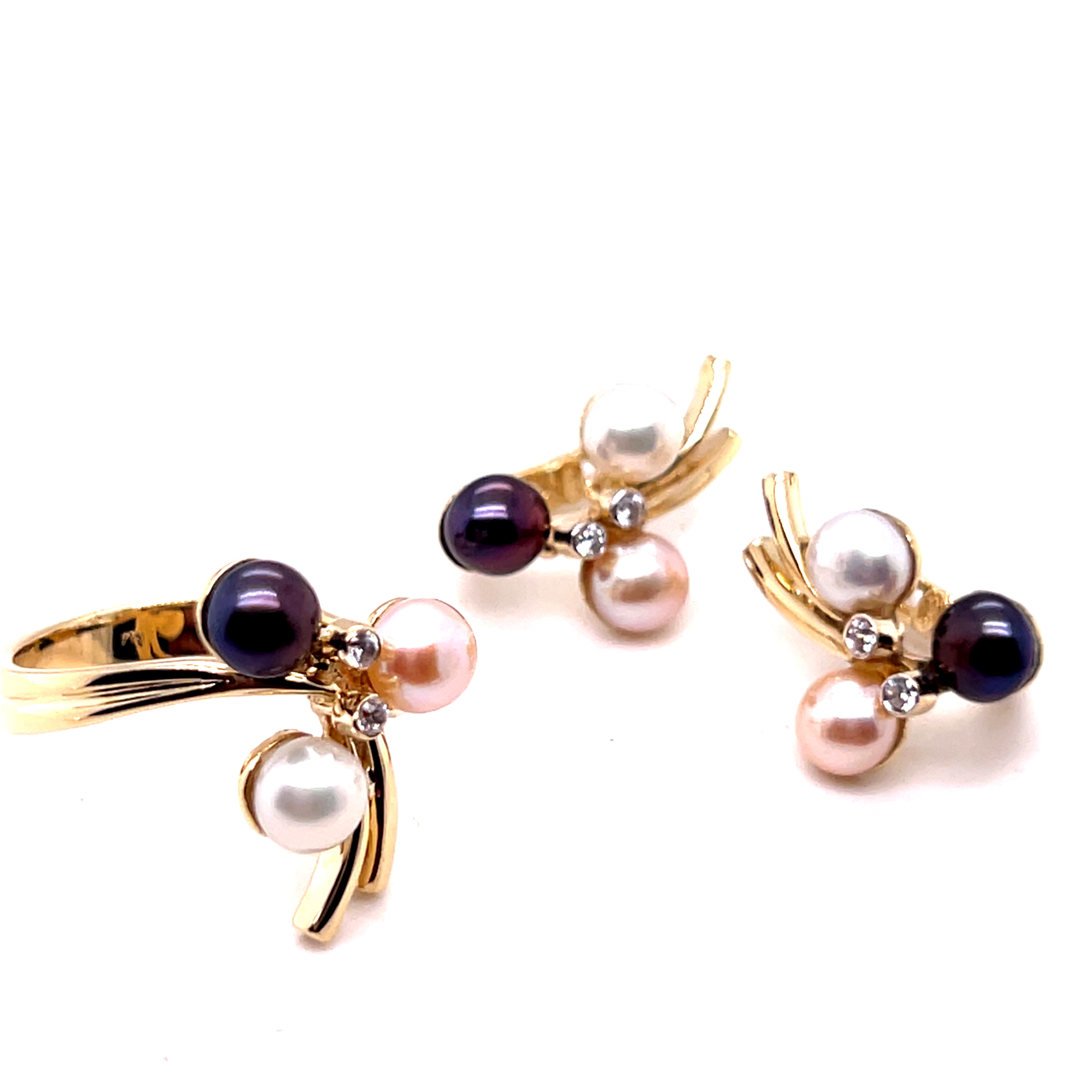 Комплект от “Jacklin hugasian” в жълто злато с бяла,розова и тъмна перла