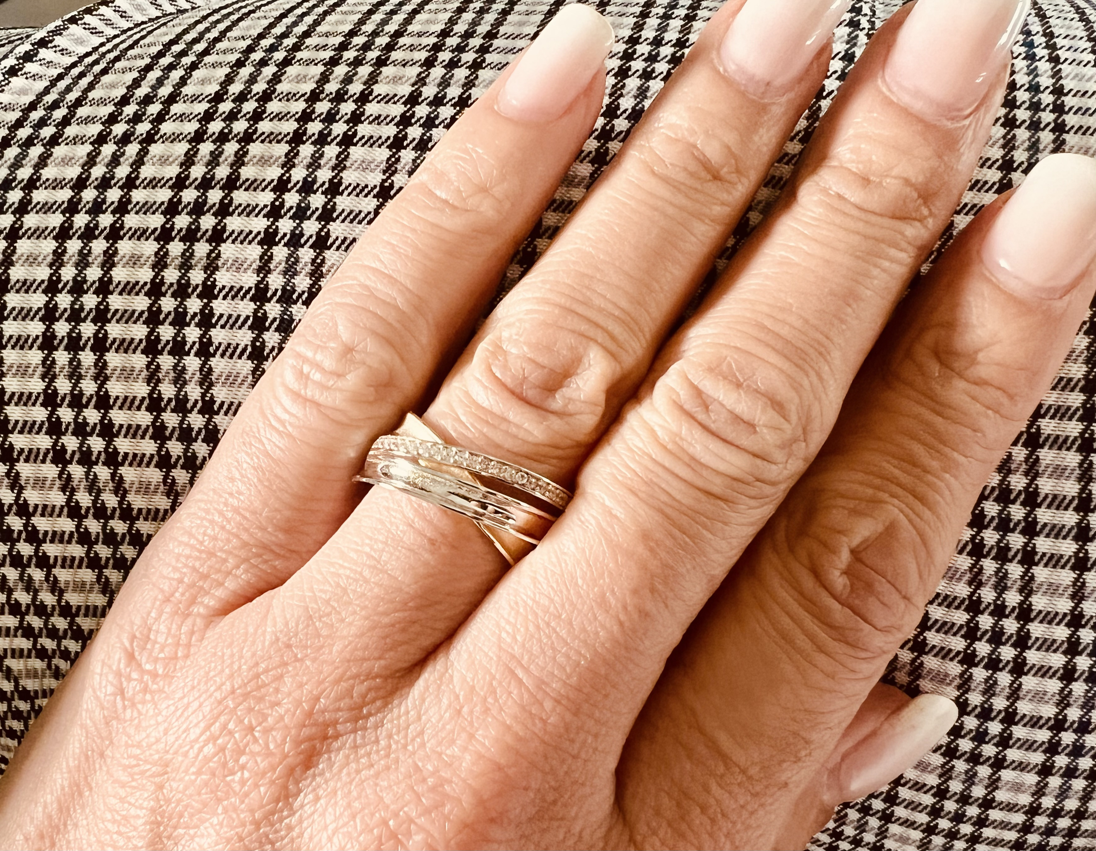 Пръстен от “Jacklin hugasian” в жълто и бяло злато с циркони