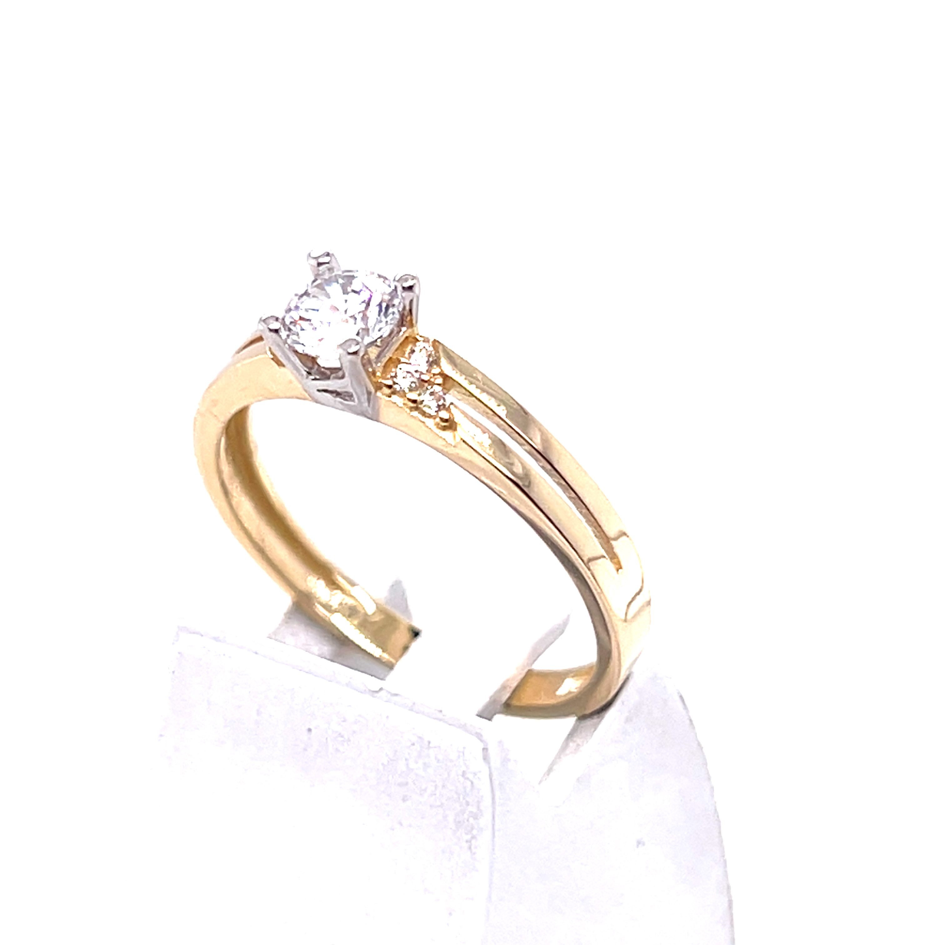 Пръстен от “Jacklin hugasian” в жълто и в бяло злато с циркони.