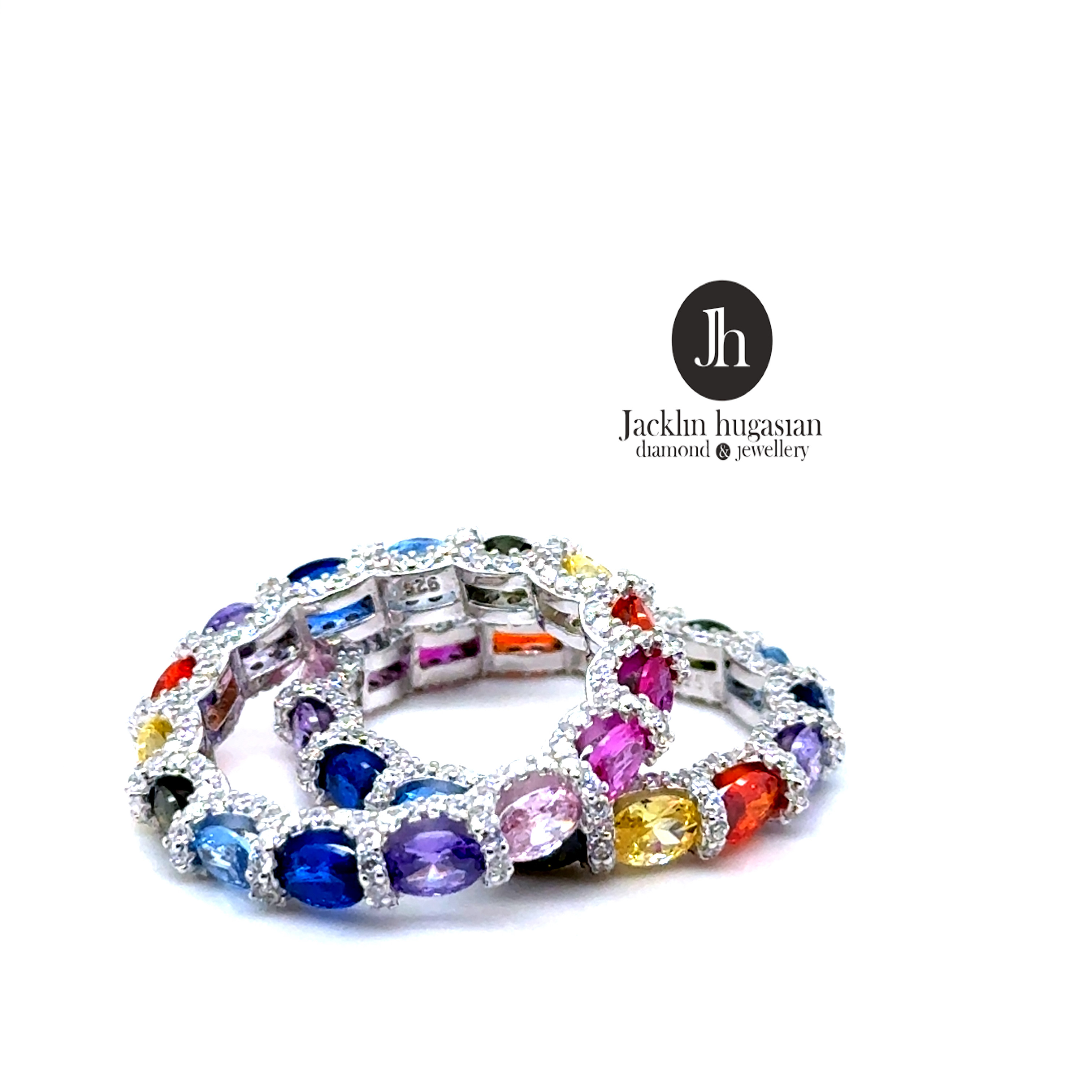 Пръстен от "Jacklin hugasian" в сребро с разноцветни цирконии.