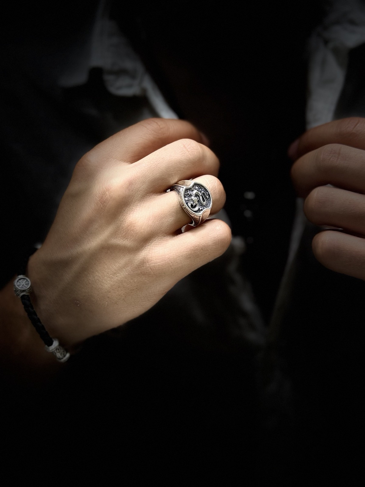 Мъжки пръстен от "Jacklin hugasian" в сребро с оксидация