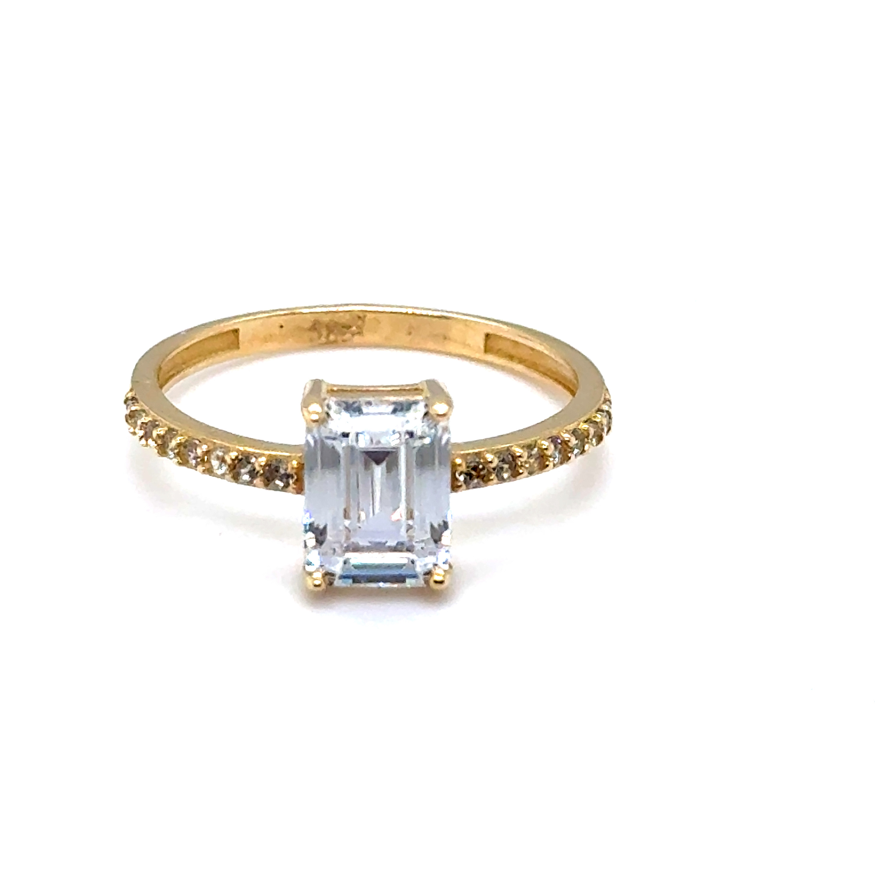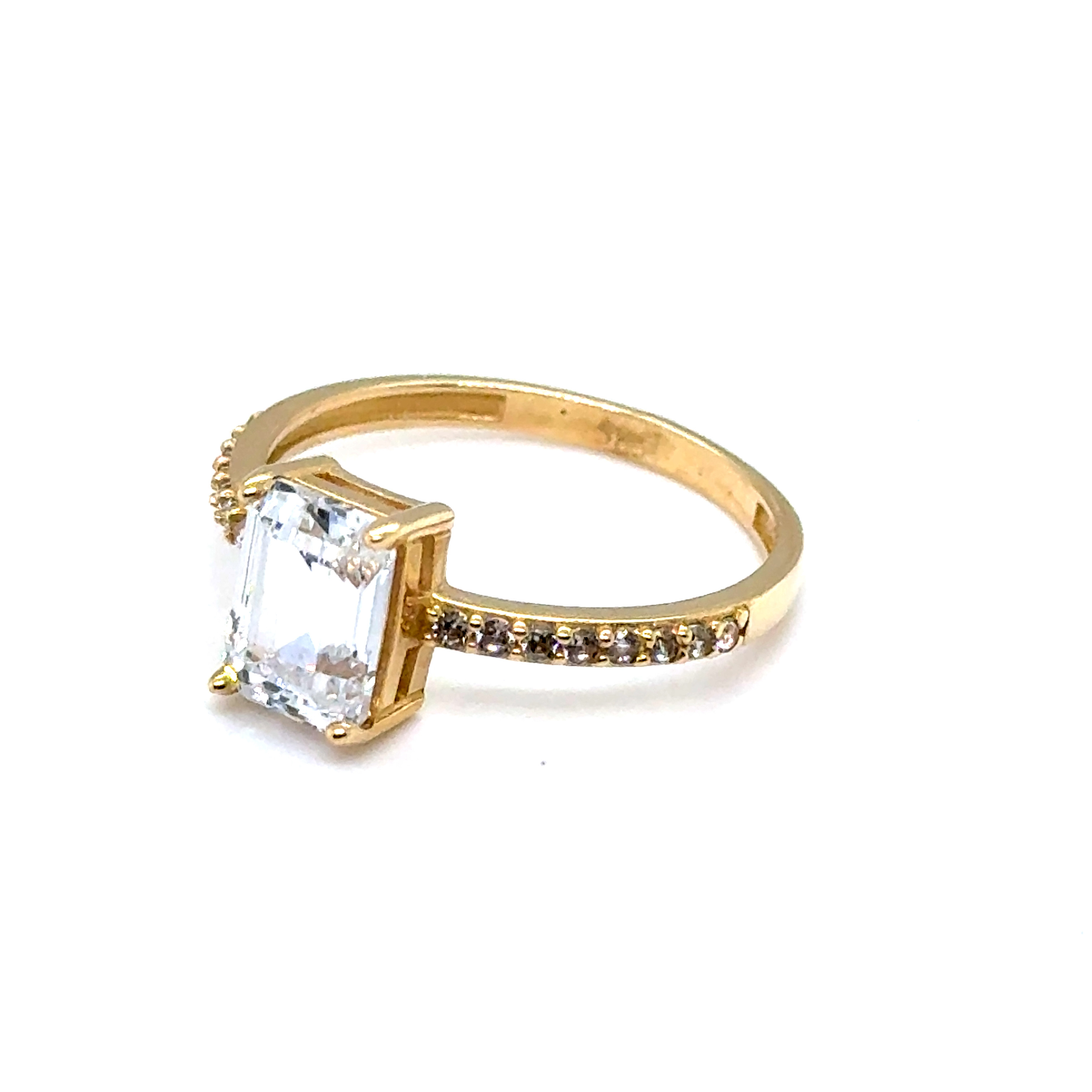 Пръстен от “Jacklin hugasian” в жълто злато с циркони.