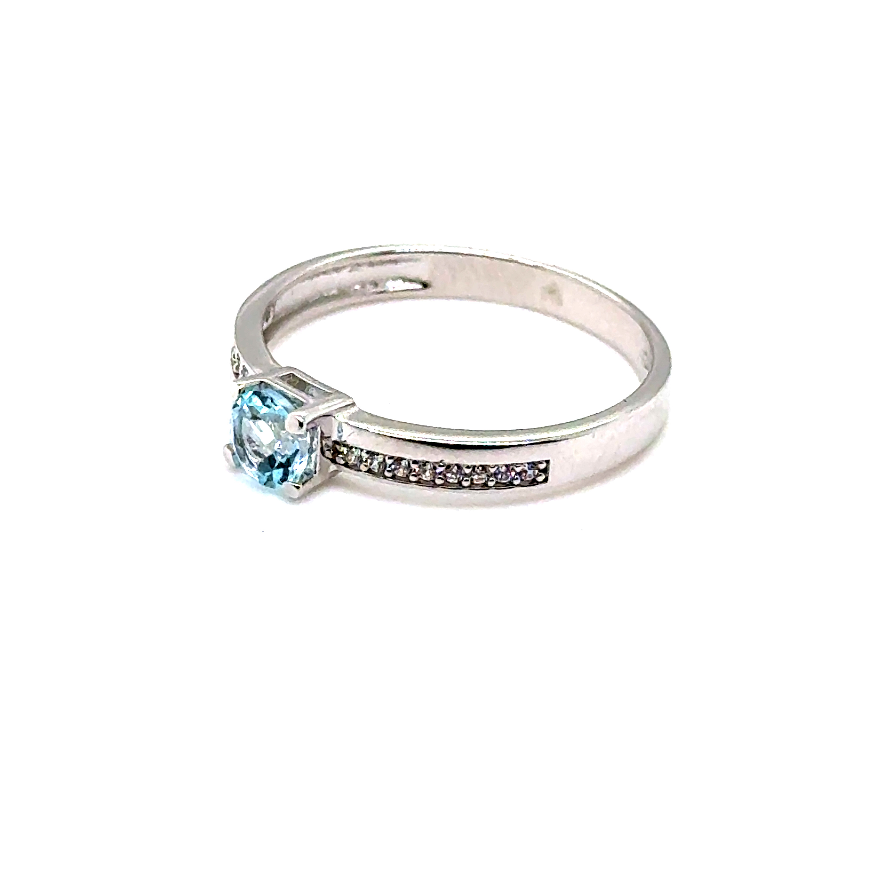 Пръстен от “Jacklin hugasian” в бяло злато с циркони и аквамарин.