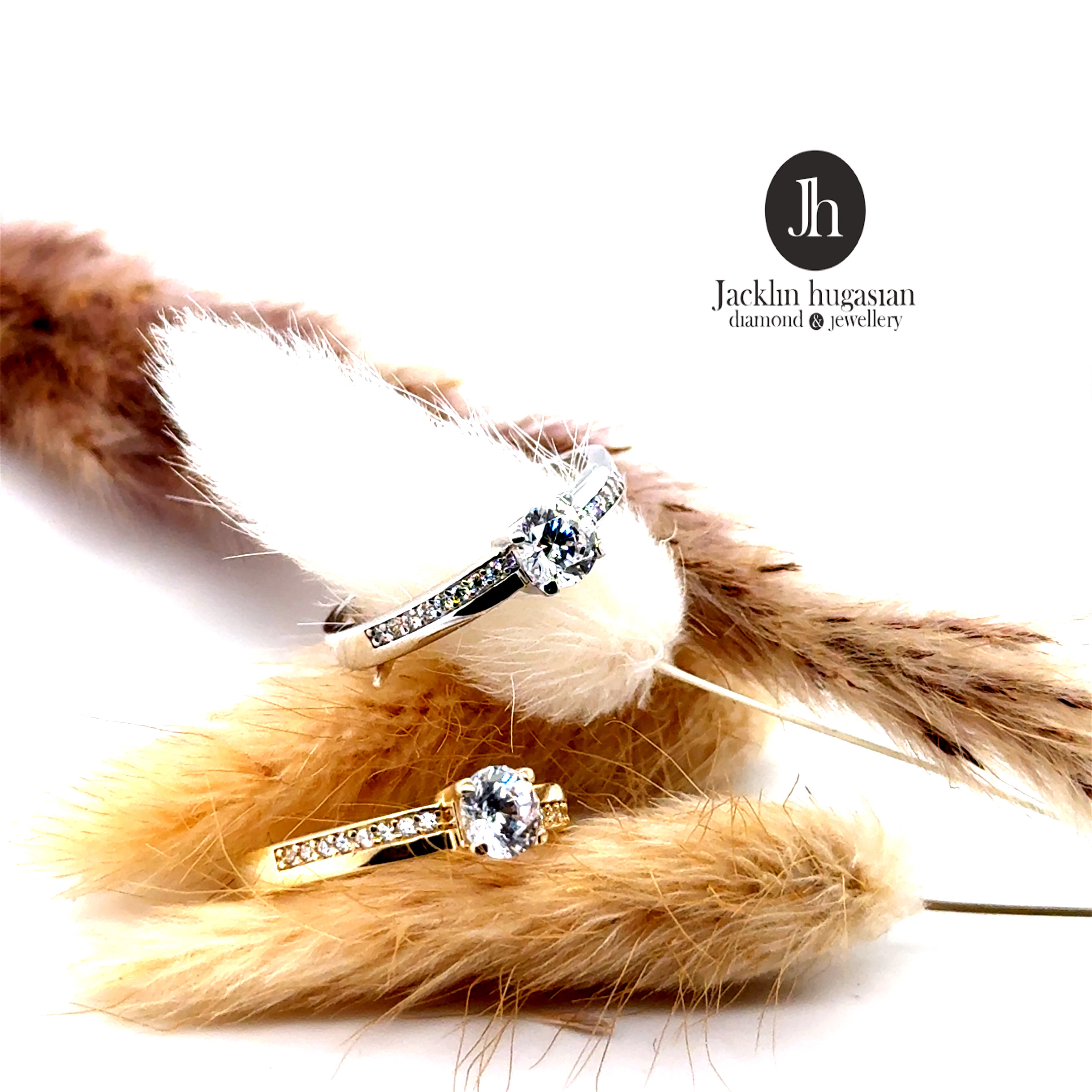 Пръстен от “Jacklin hugasian” в жълто и в бяло злато с циркони.
