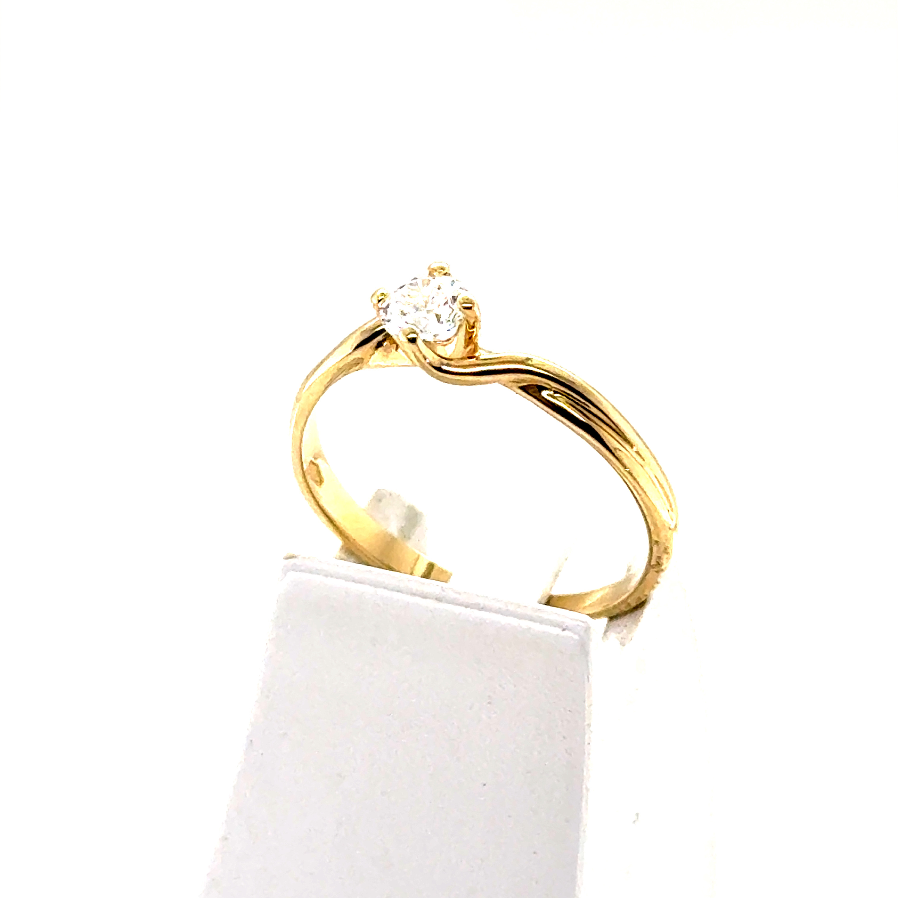 Пръстен от “Jacklin hugasian” в жълто злато гланц с циркони.