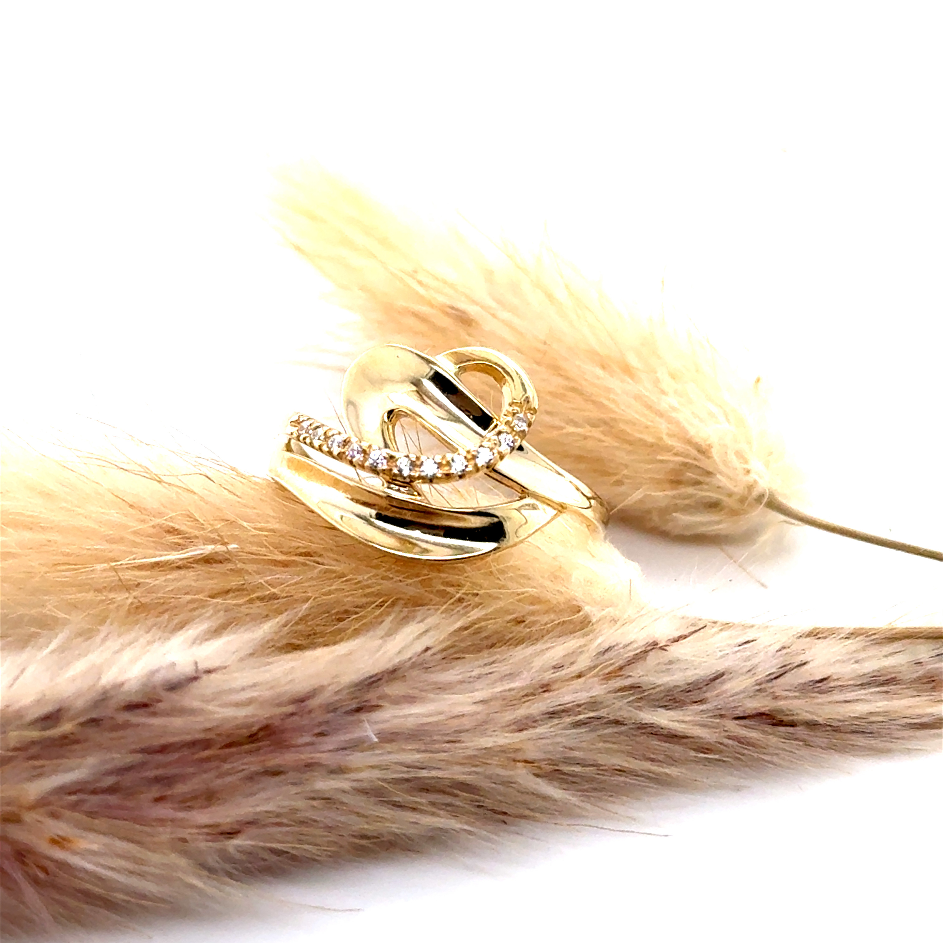 Пръстен от “Jacklin hugasian” в жълто злато с циркони.