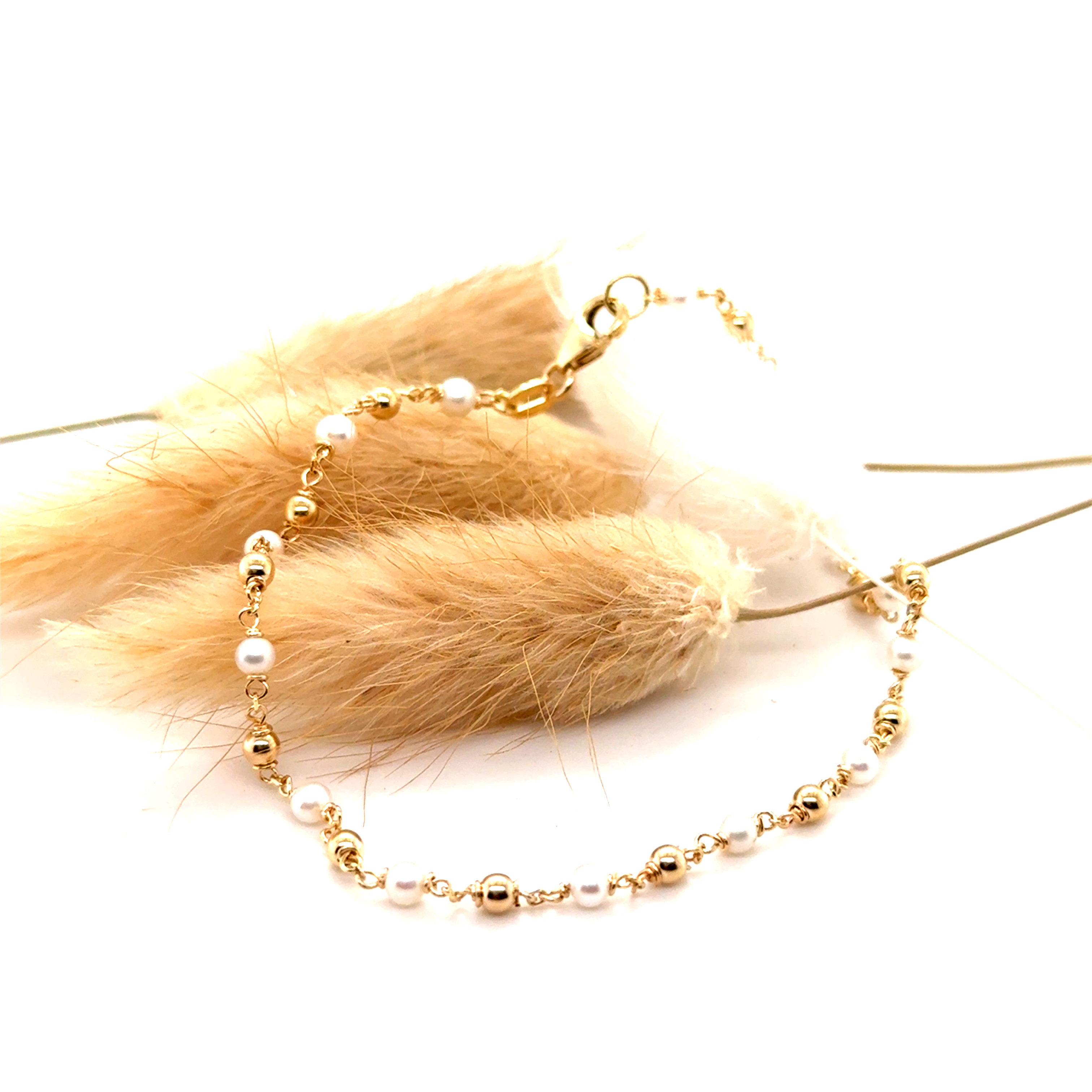 Гривна от “Jacklin hugasian” в жълто злато с естествени перли