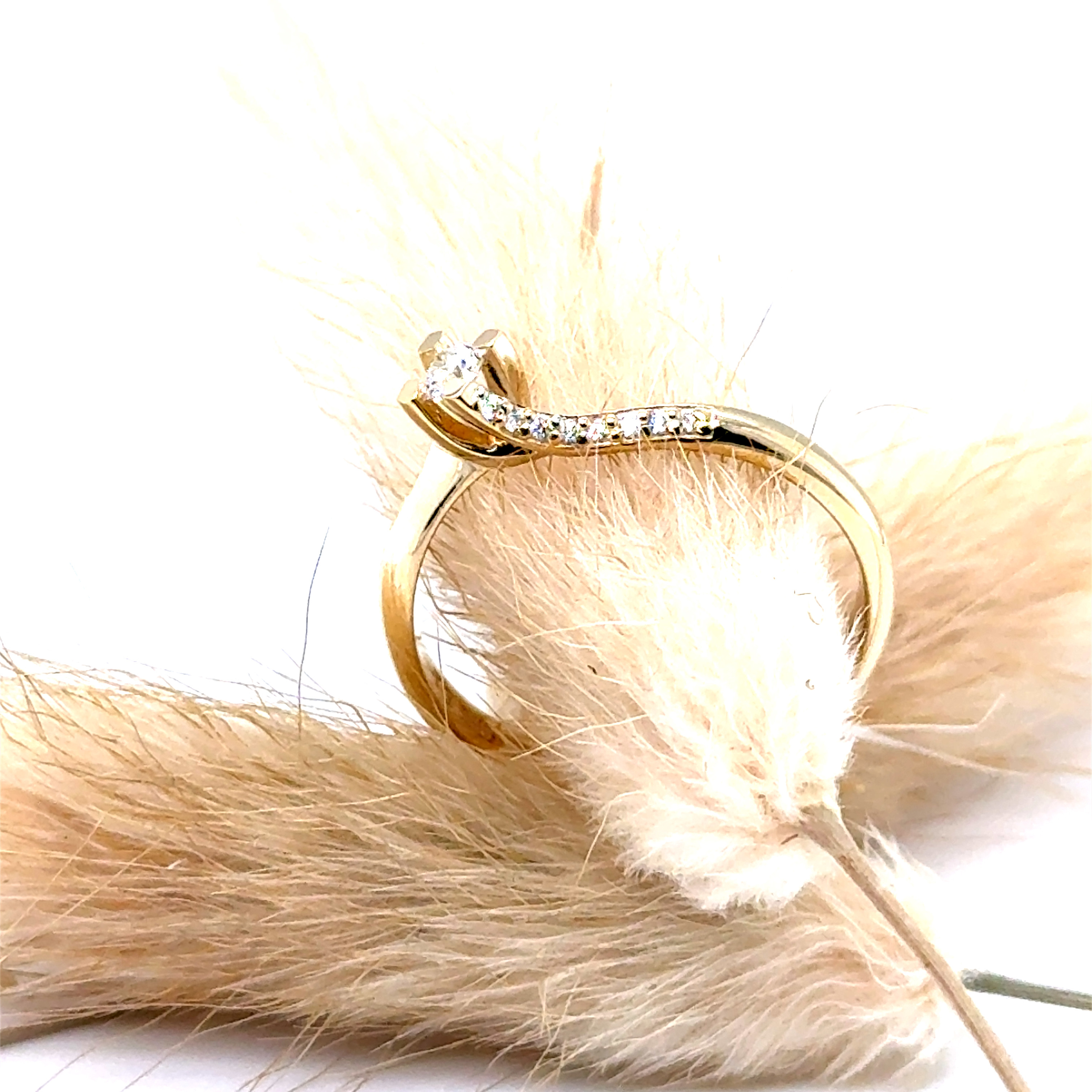 Пръстен от “Jacklin hugasian” в жълто злато с диаманти.