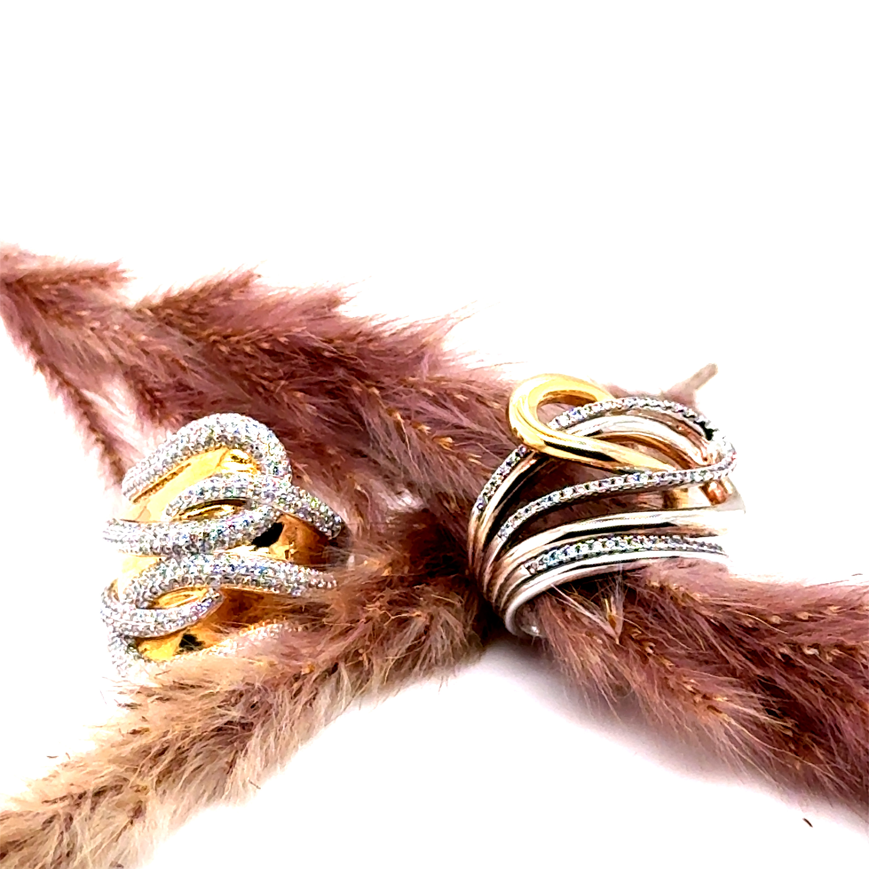 Пръстен от “Jacklin hugasian” в сребро с жълта позлата и цирконии.