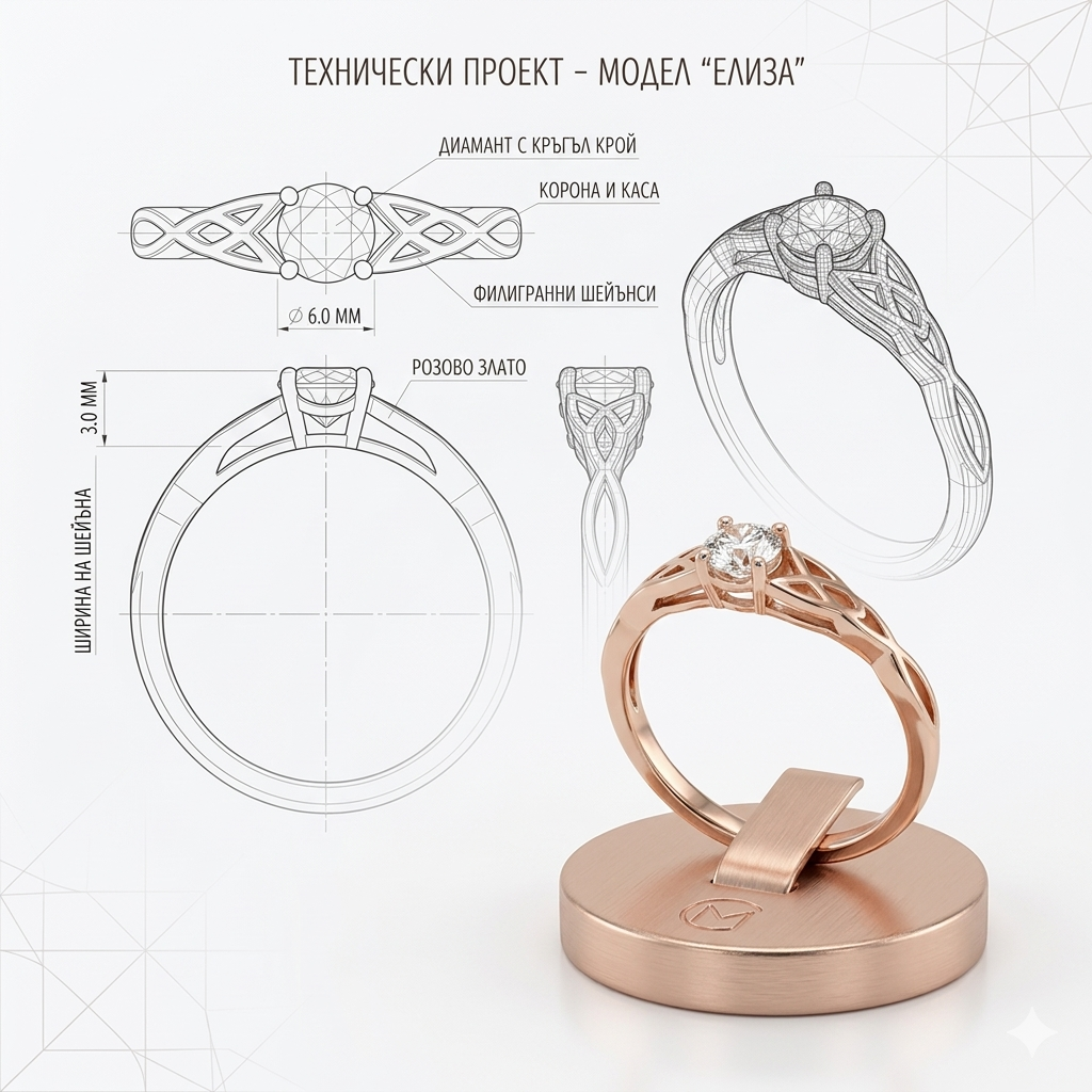 Пръстен от "Jacklin hugasian" в розово злато с диамант.