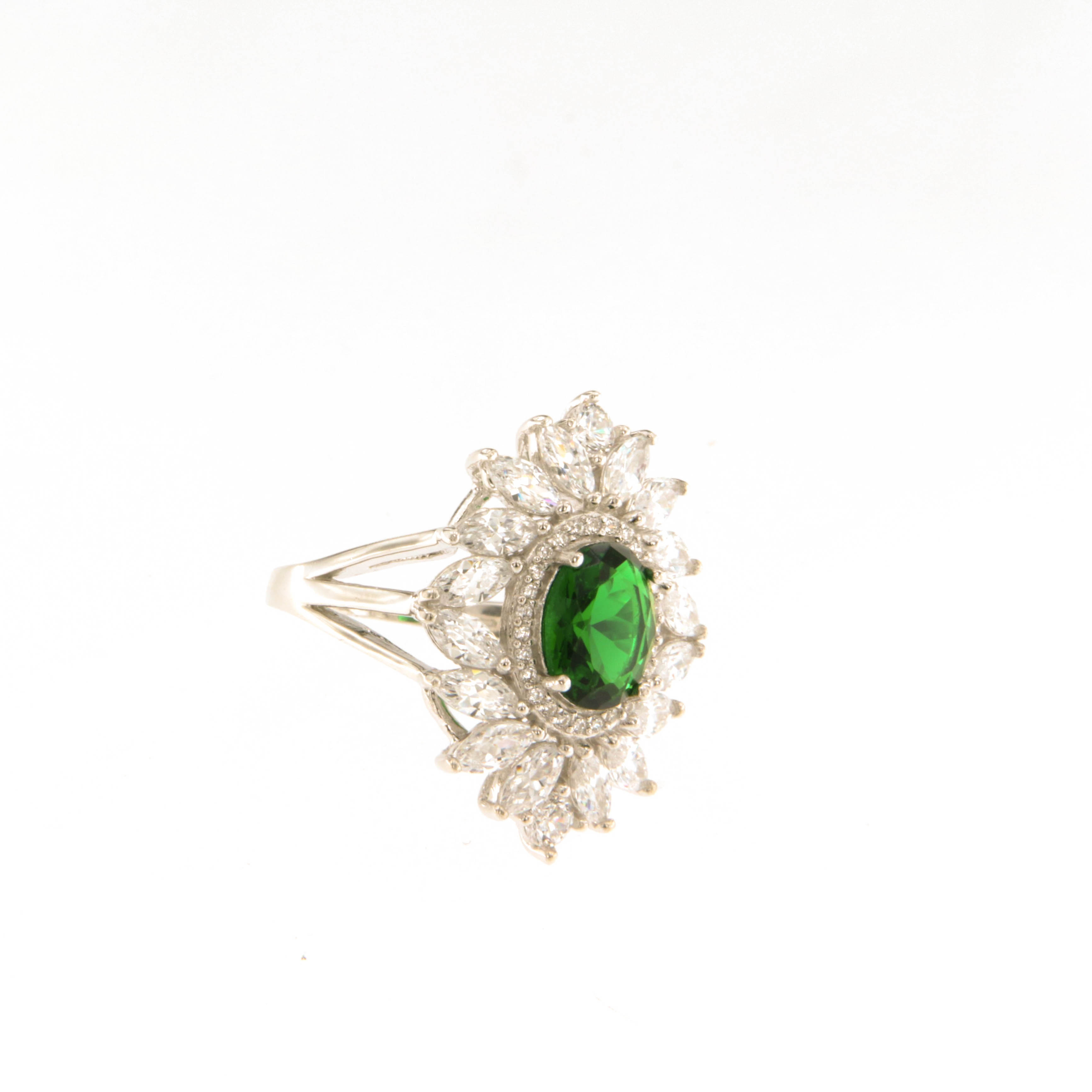 Пръстен от " Jacklin hugasian " сребро с изумруд и цирконий.