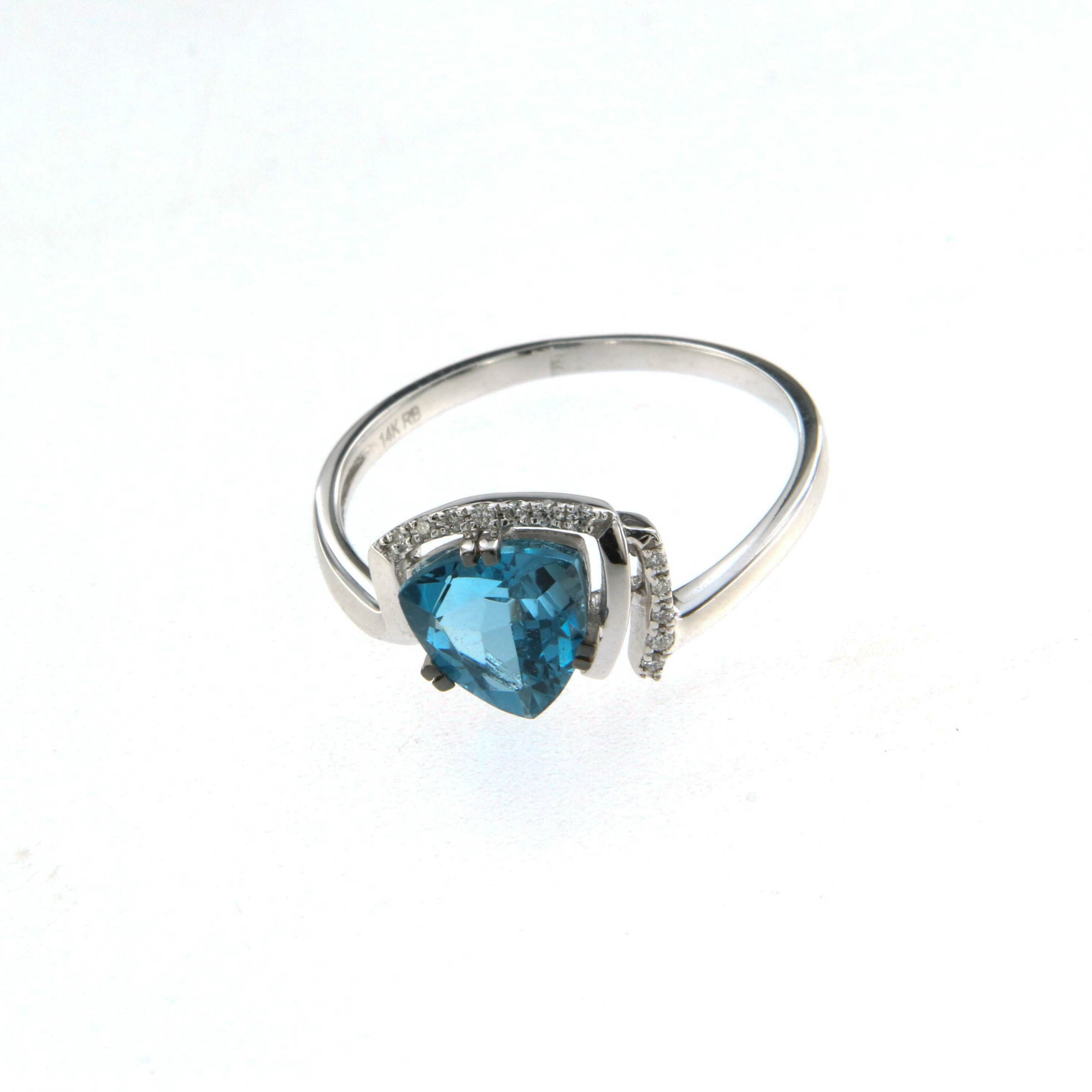 Пръстен от "Jacklin hugasian" в бяло злато с диаманти и син топаз.