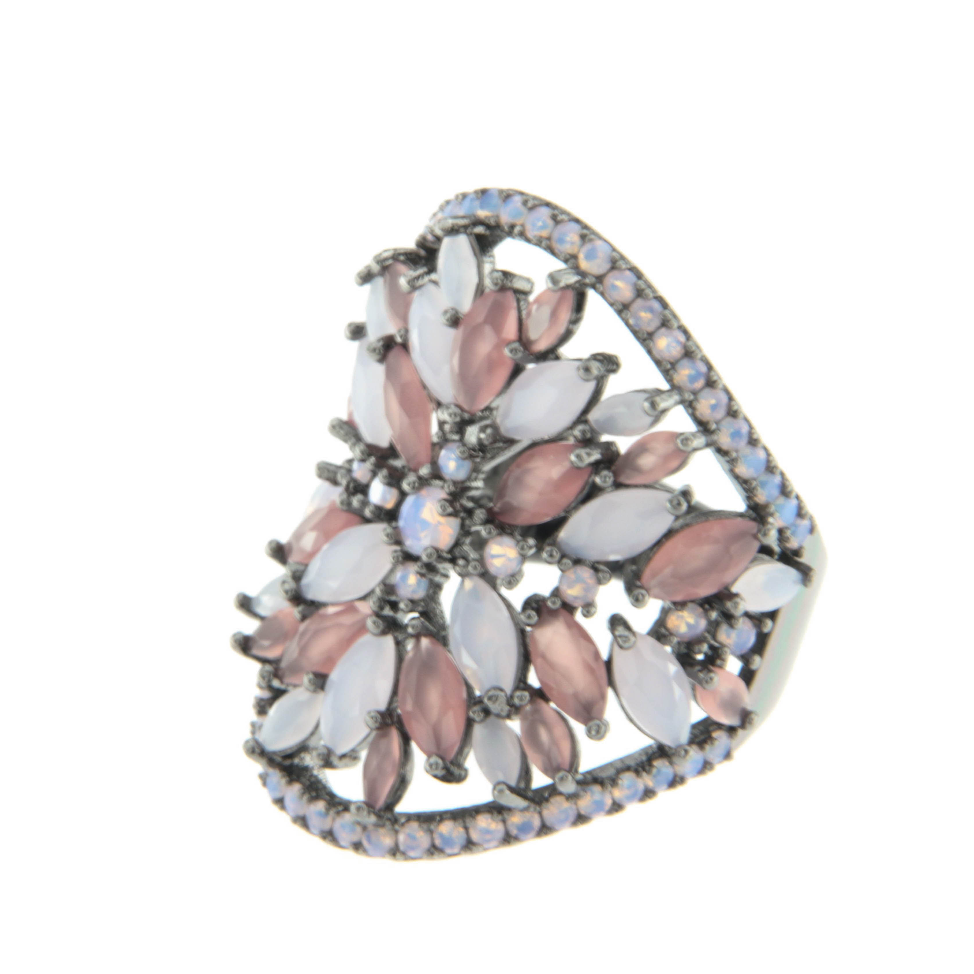 Пръстен от "Jacklin hugasian" в оксидирано сребро с лунен камък, опал и розов кварц.