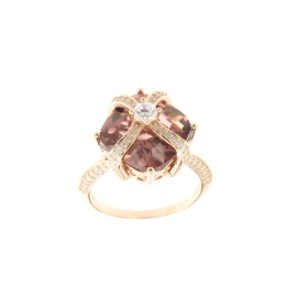 Пръстен от “Jacklin hugasian” в розово сребро с корал, перла, аметист и циркони.ю