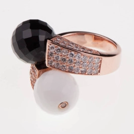 Пръстен от "Jacklin hugasian" в розово сребро с цирконии, зелен хематит, цитрин и розов кварц.