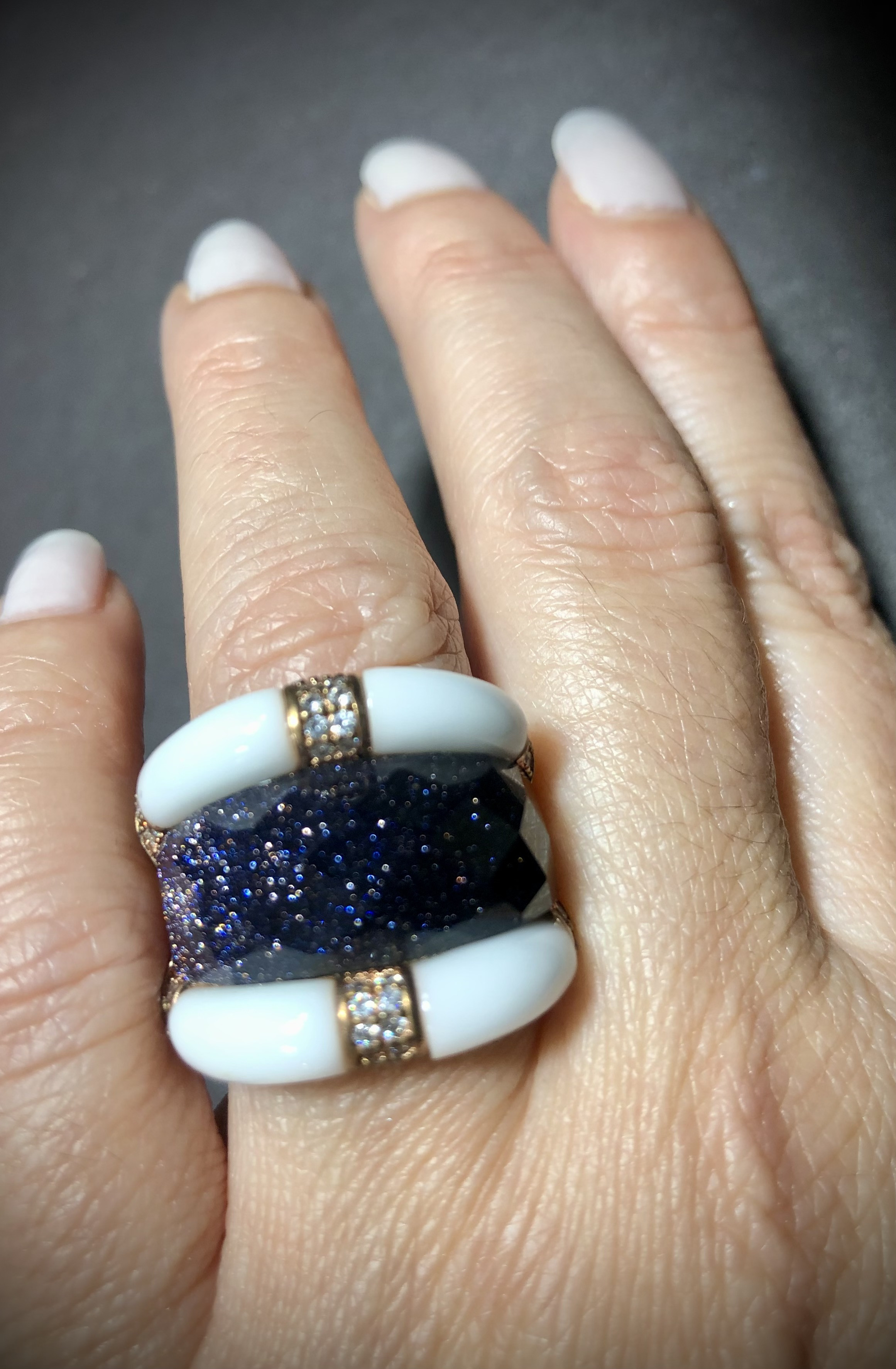 Пръстен от "Jacklin hugasian" в розово сребро с лилав авантюрин, бял ахат и цирконии.