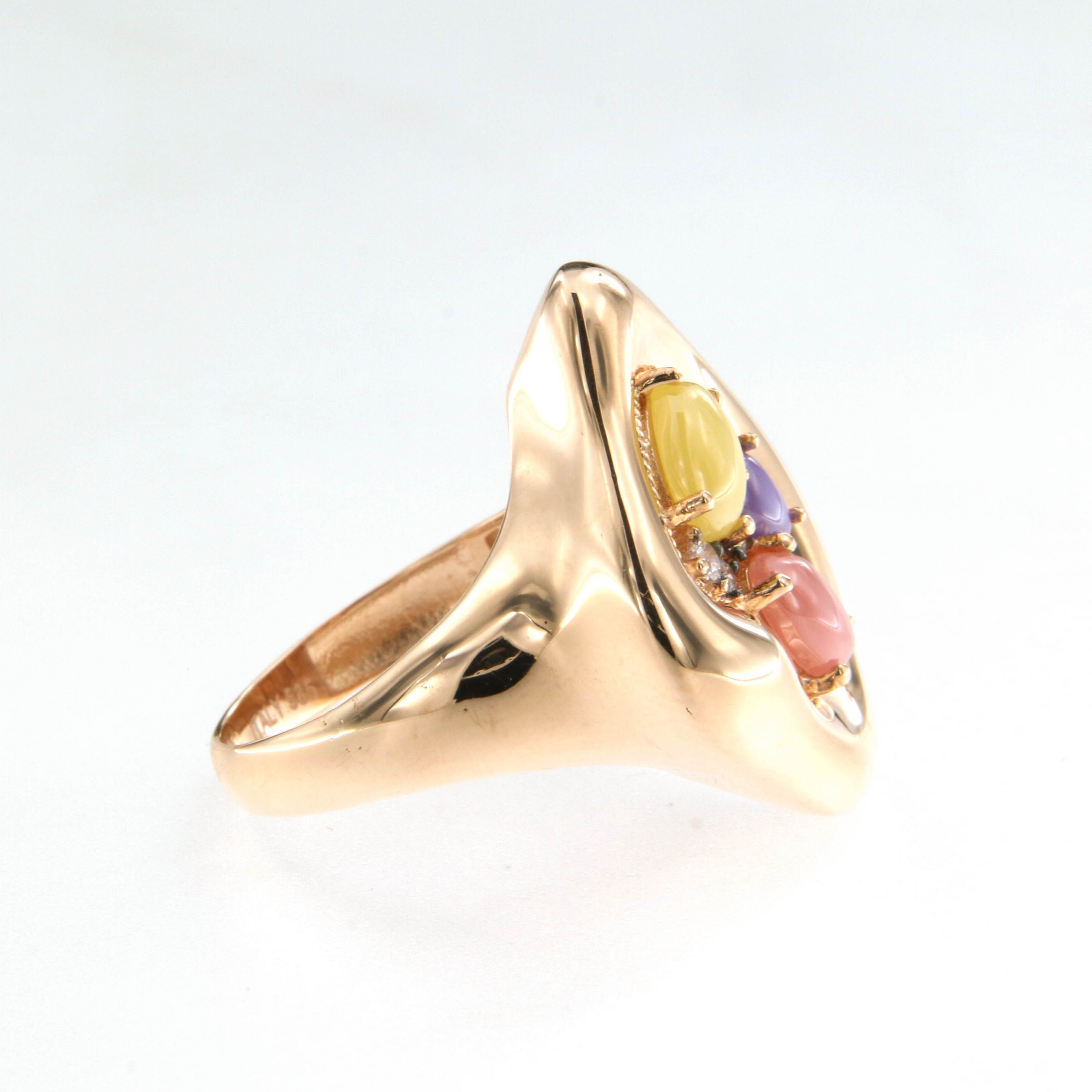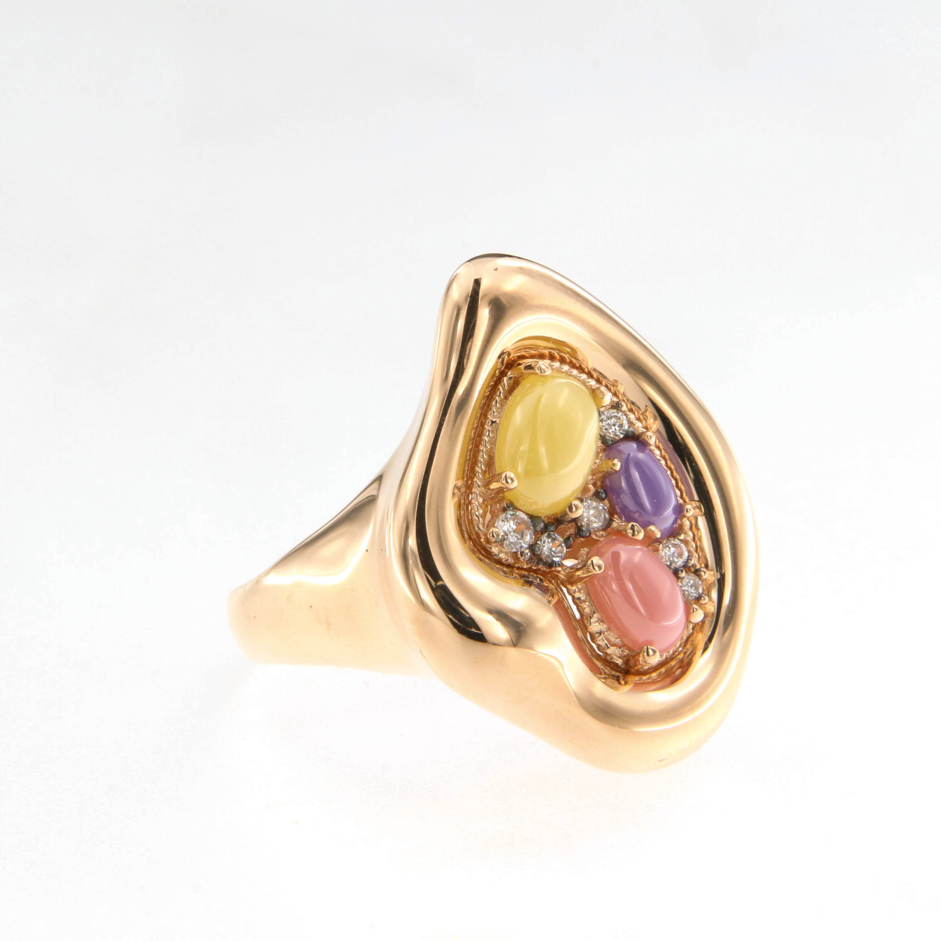 Пръстен от “Jacklin hugasian” в розово злато с лунен камък и цирконии.