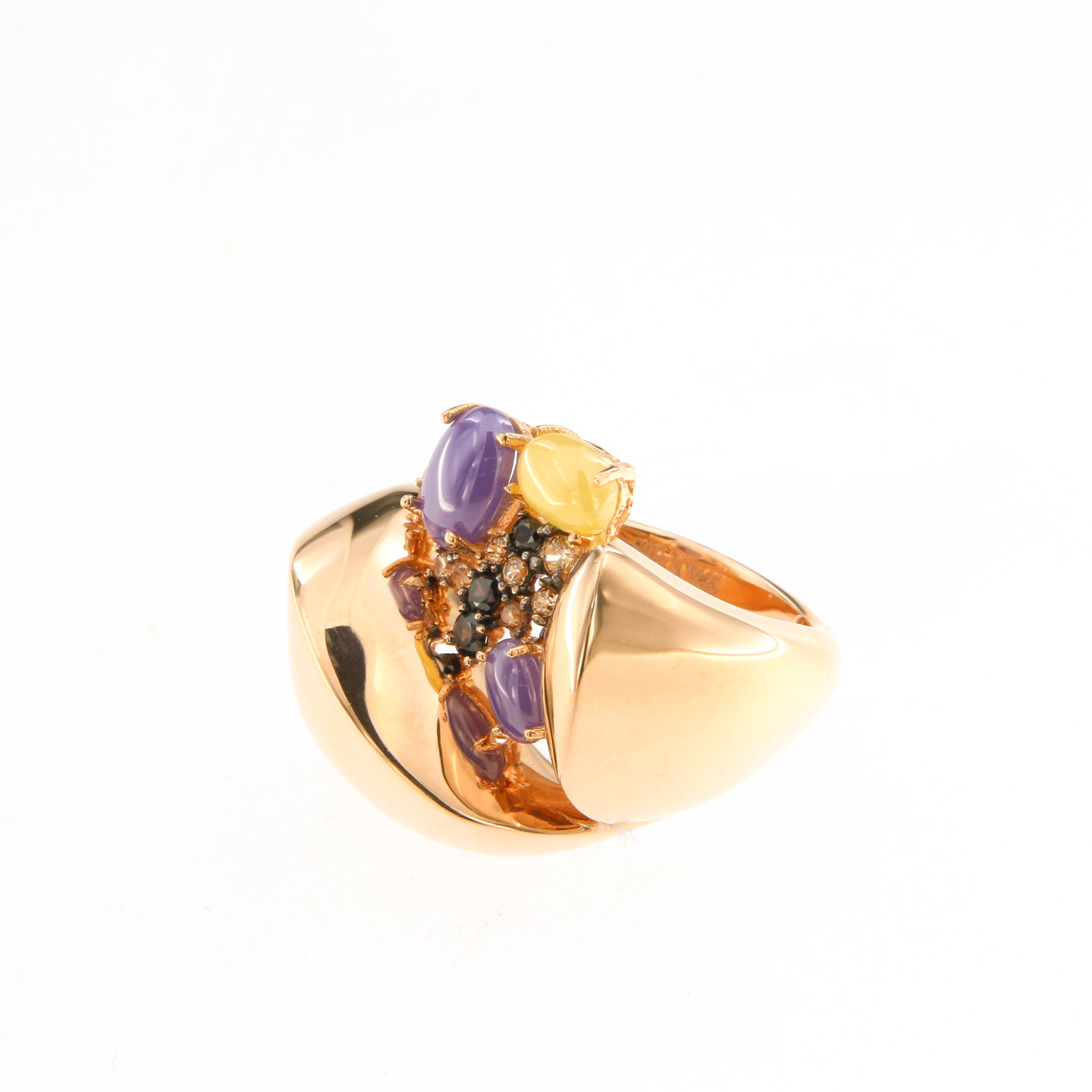 Пръстен от “Jacklin hugasian” в розово злато с лунен камък, гранат и златист топаз.
