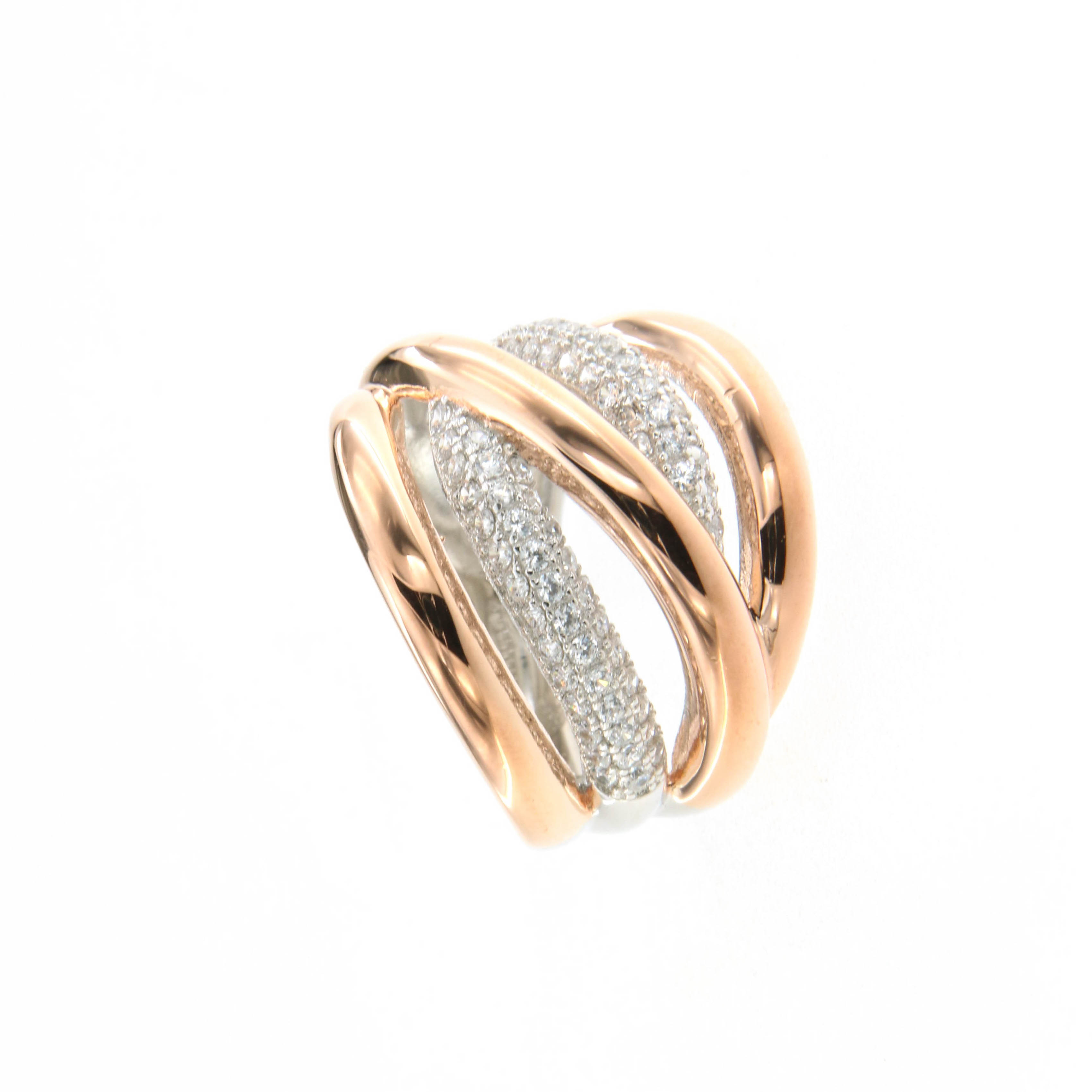 Пръстен от “Jacklin hugasian” в сребро и розово сребро с циркони.