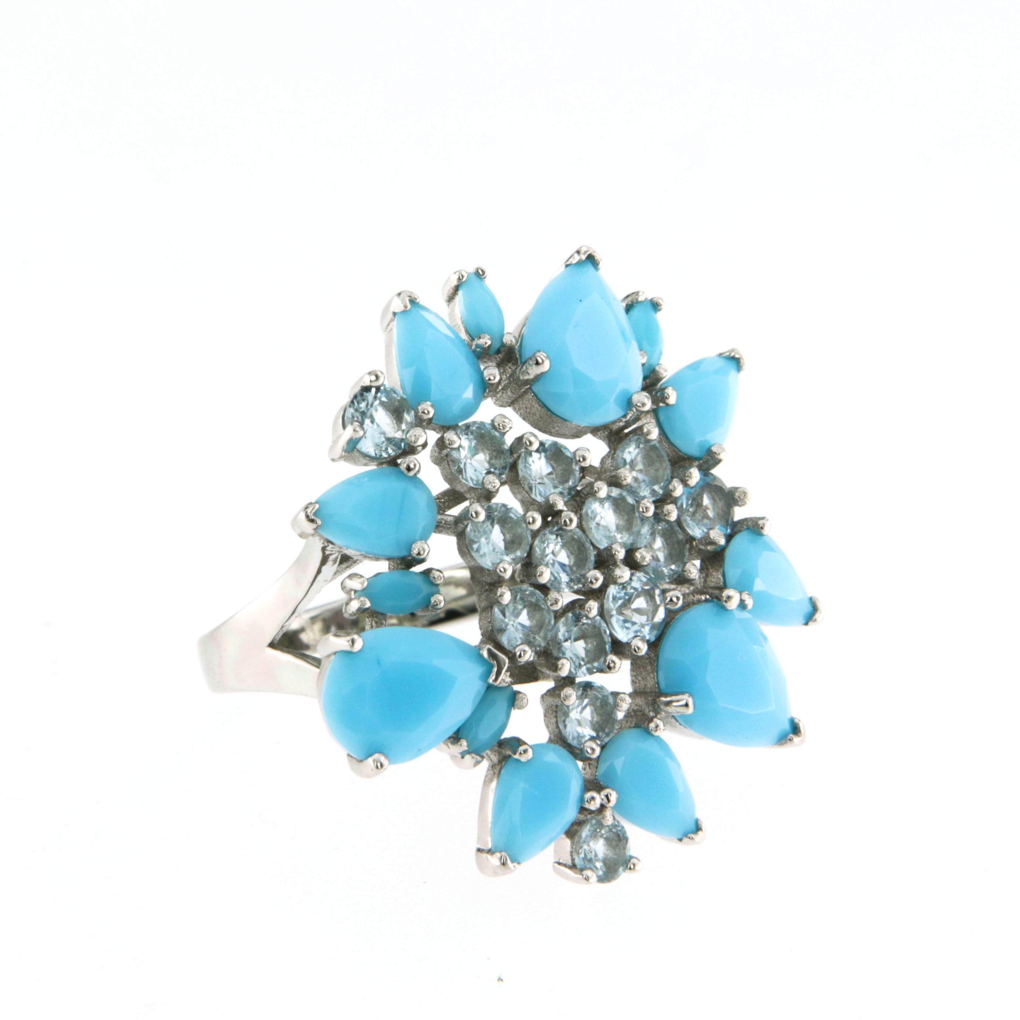 Пръстен от "Jacklin hugasian" в сребро с аквамарин и светлосин ахат.