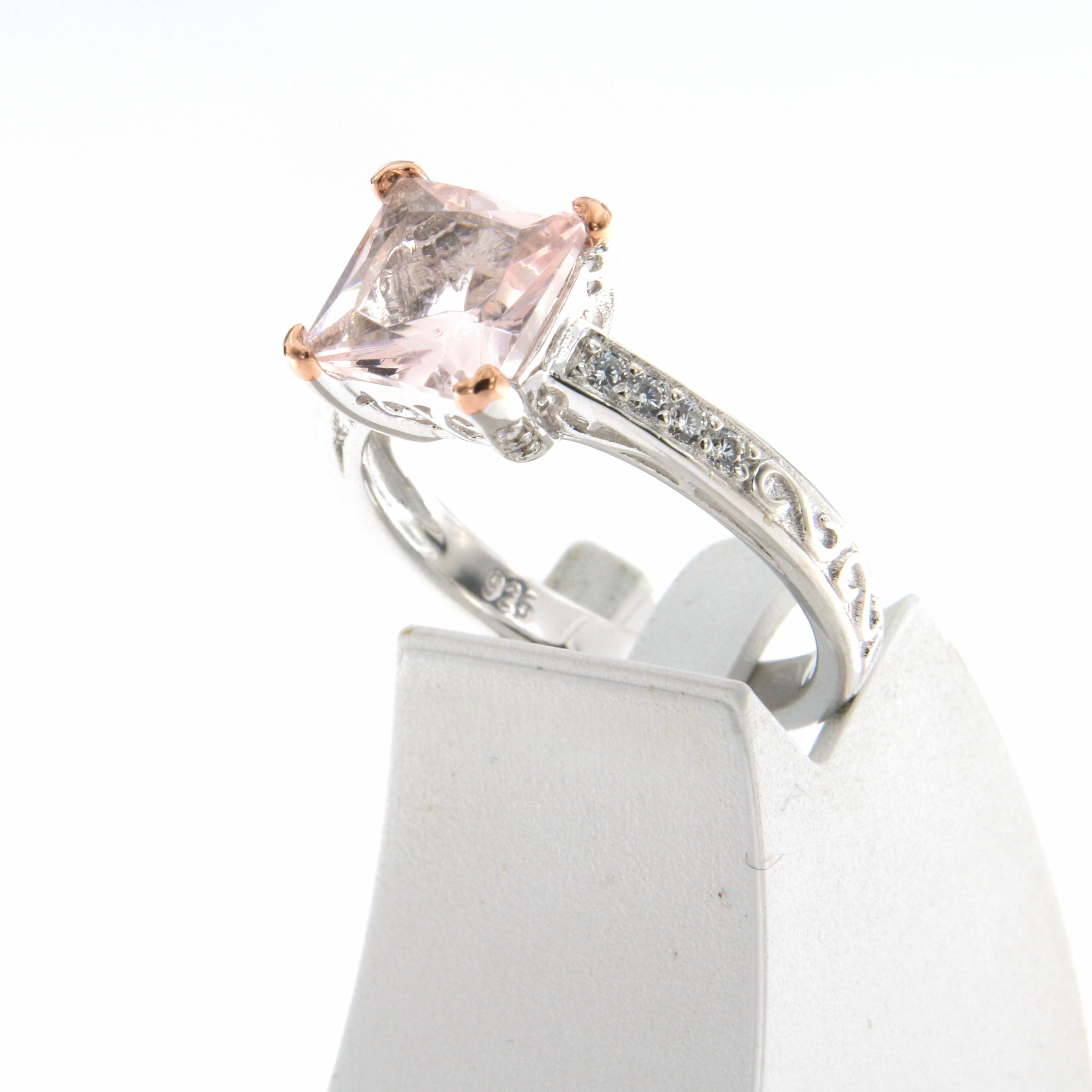 Пръстен от "Jacklin hugasian" в сребро с циркони и розов кварц.