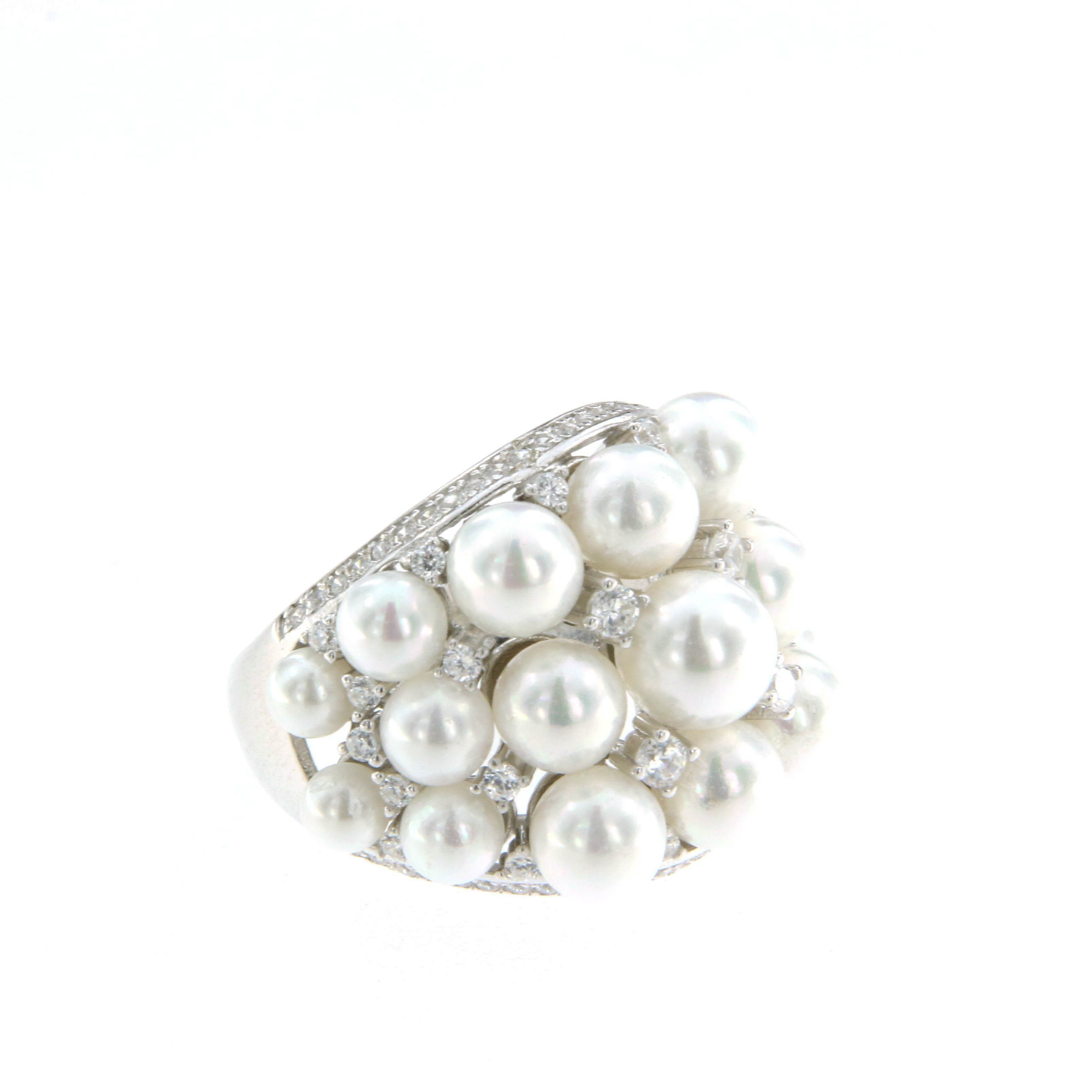 Пръстен от "Jacklin hugasian" в сребро с цирконии и бели речни перли.