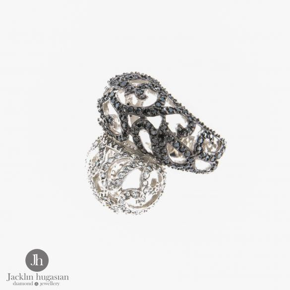Пръстен от "Jacklin hugasian" в сребро с циркони и оникси.
