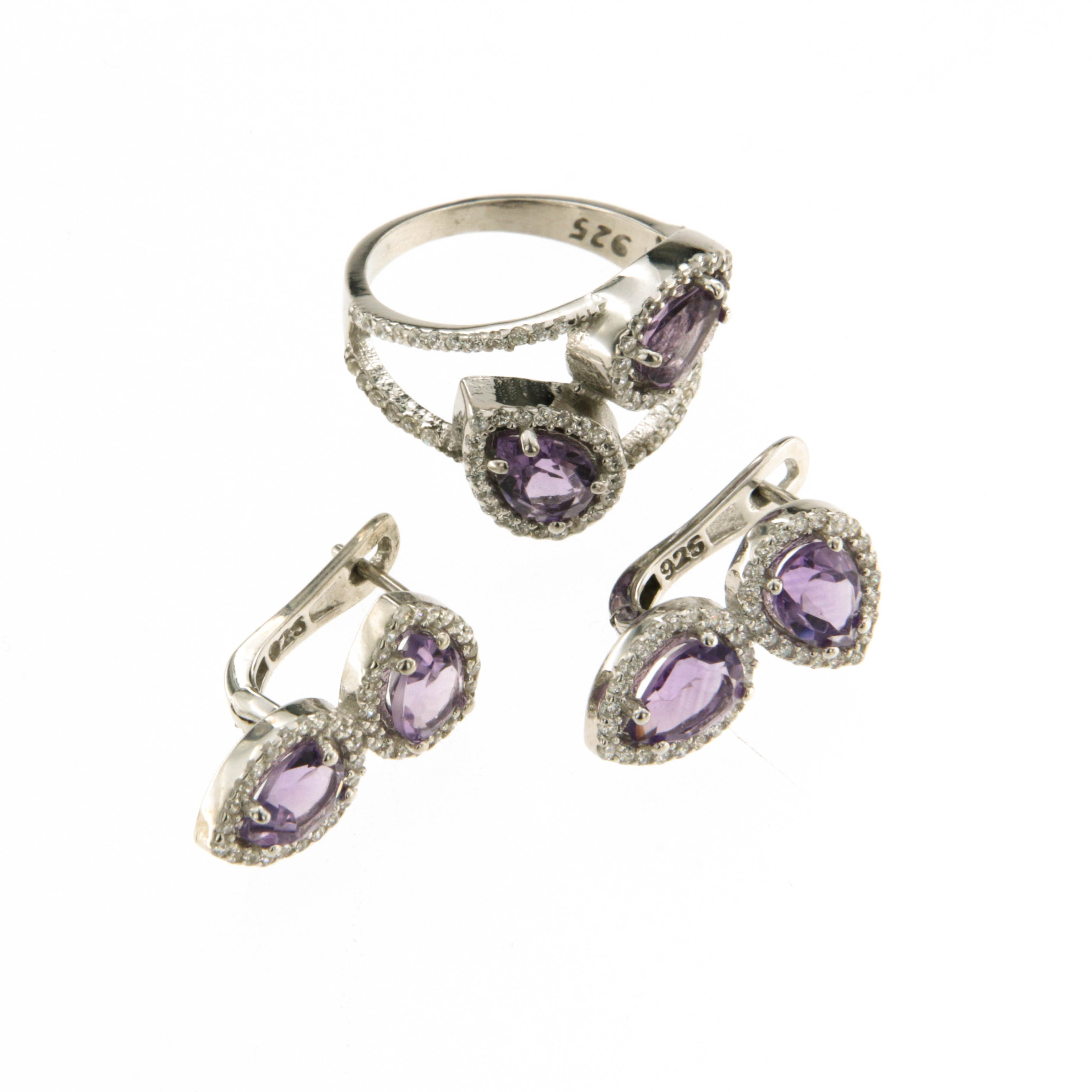 Пръстен от "Jacklin hugasian" сребро с цирконии и лилав аметист.
