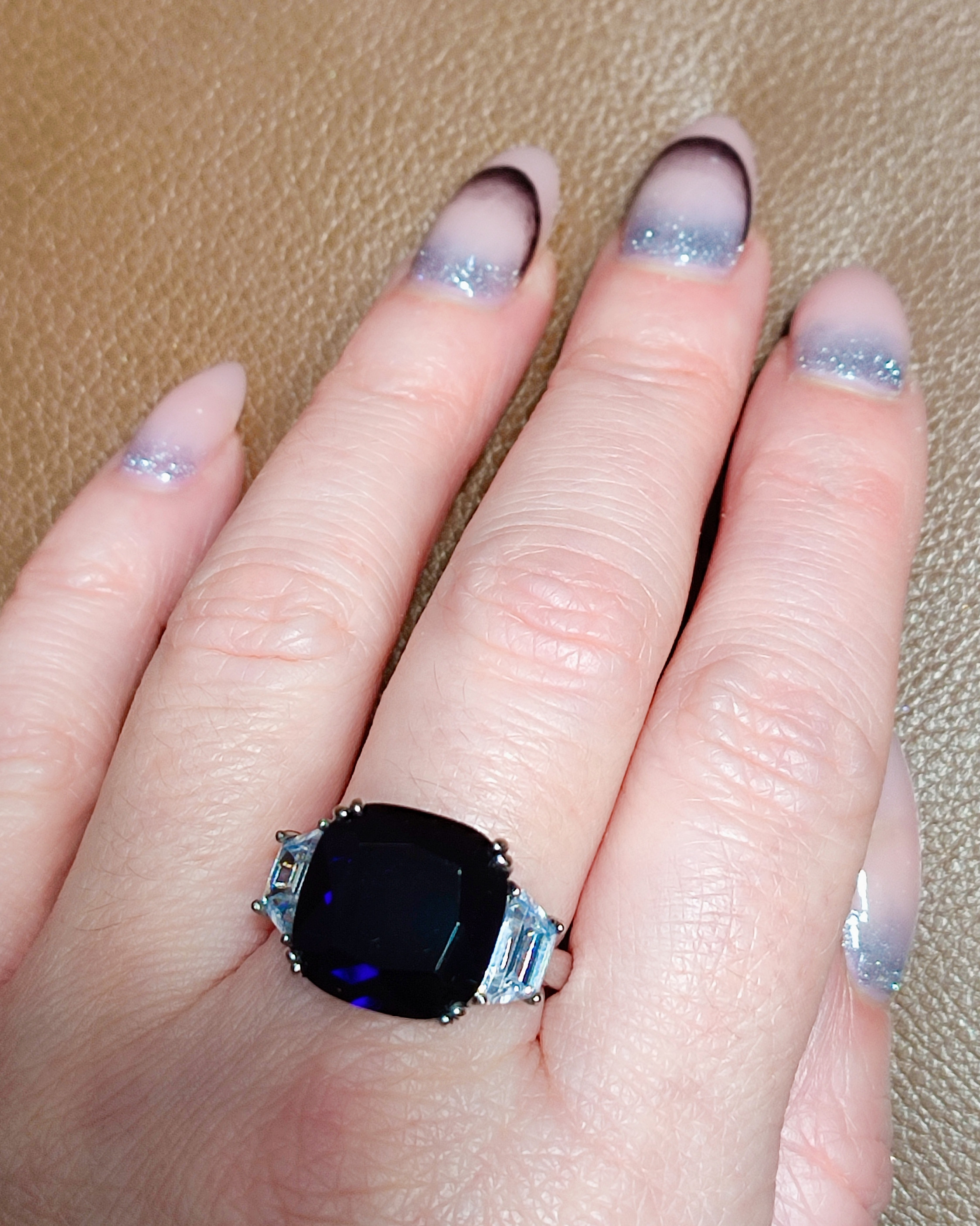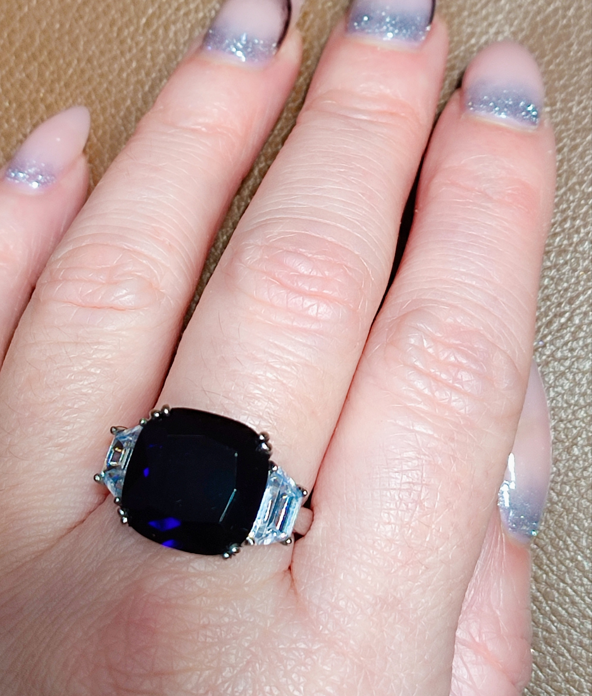Пръстен от "Jacklin hugasian" в сребро с цирконии и тъмно син сапфир.