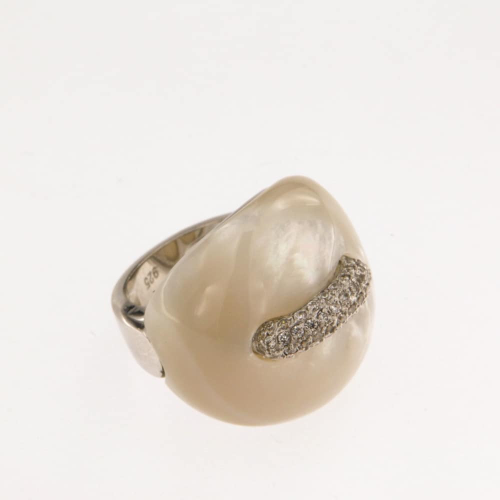 Пръстен от " Jacklin hugasian " в сребро с цирконий и бял седеф.
