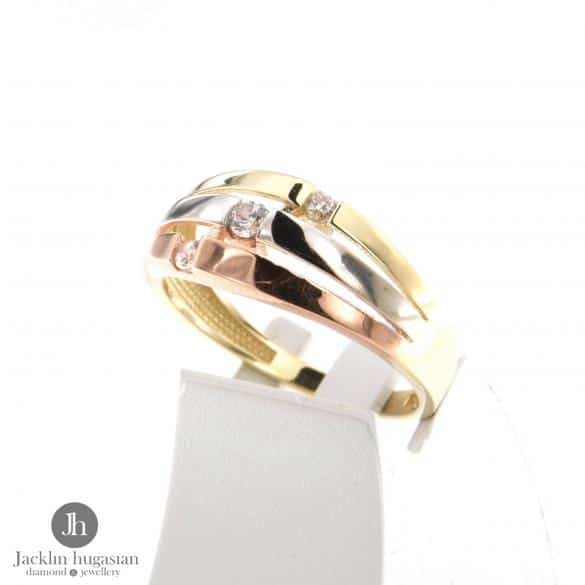 Пръстен от "Jacklin hugasian" в жълто, бяло и розово злато с циркони