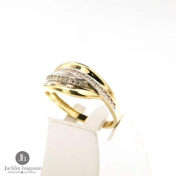 Пръстен от "Jacklin hugasian" в жълто и бяло злато с циркони.