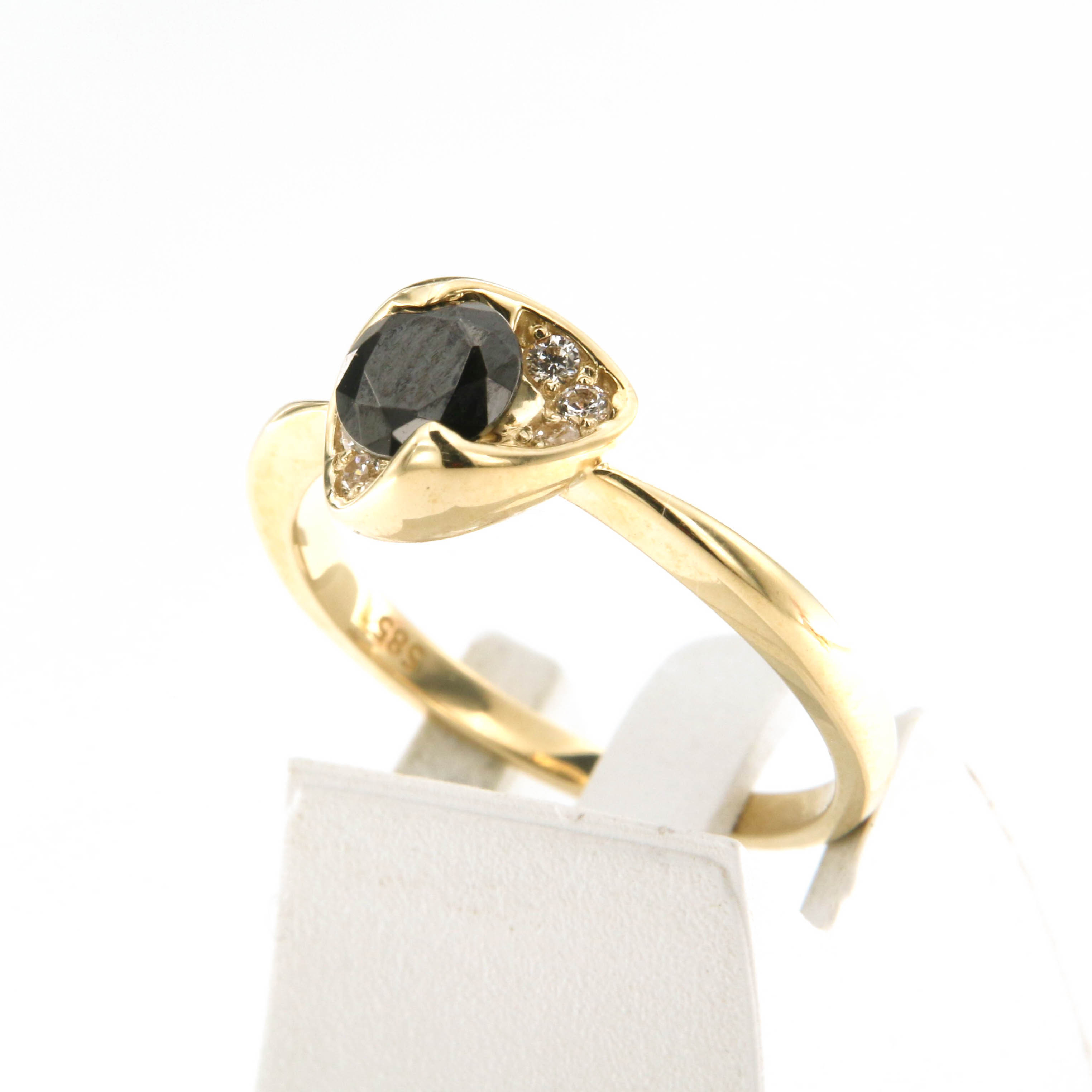 Пръстен от ” Jacklin hugasian ” в жълто злато гланц с оникс и циркони.