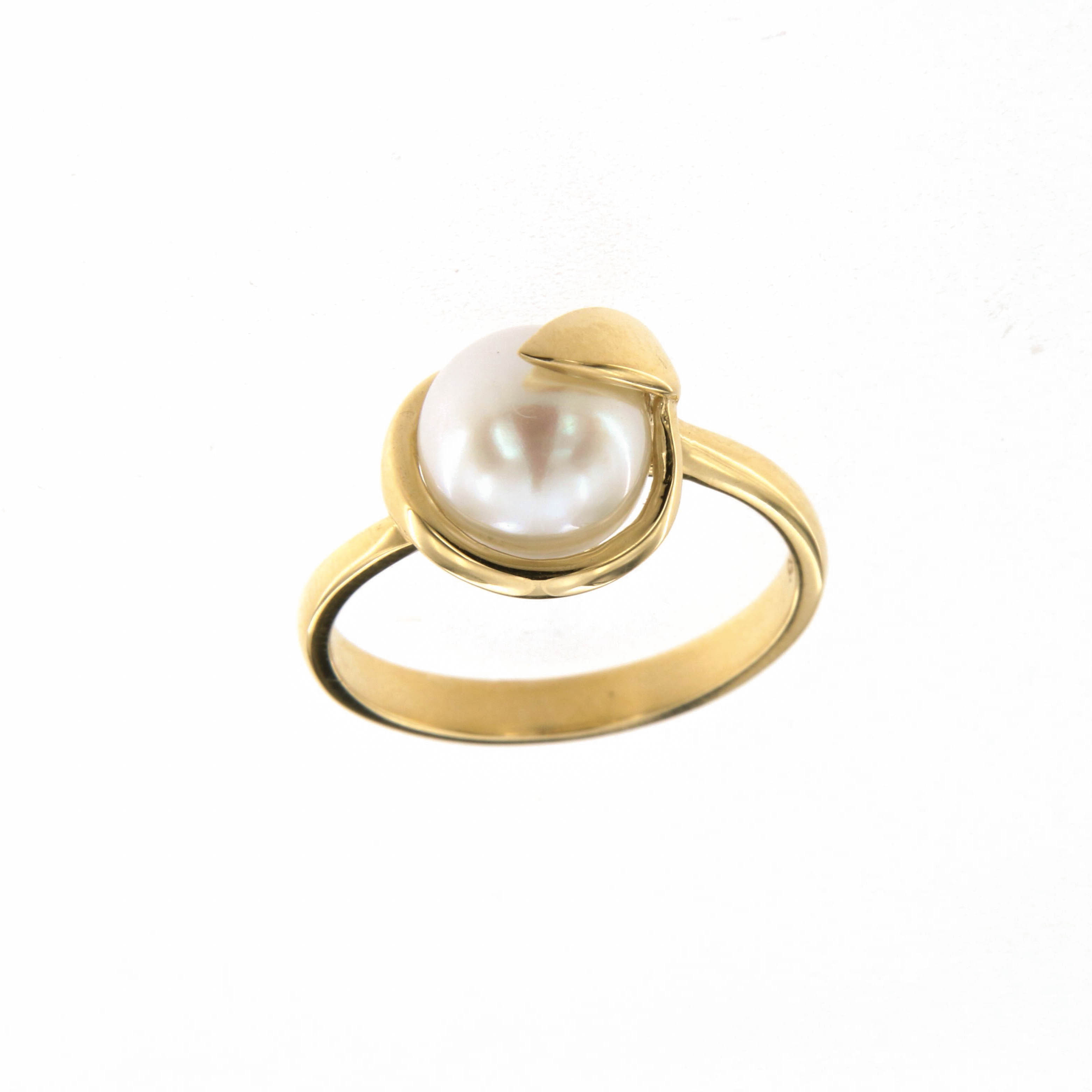 Пръстен от "Jacklin hugasian" в жълто злато гланц с култивирана бяла перла.