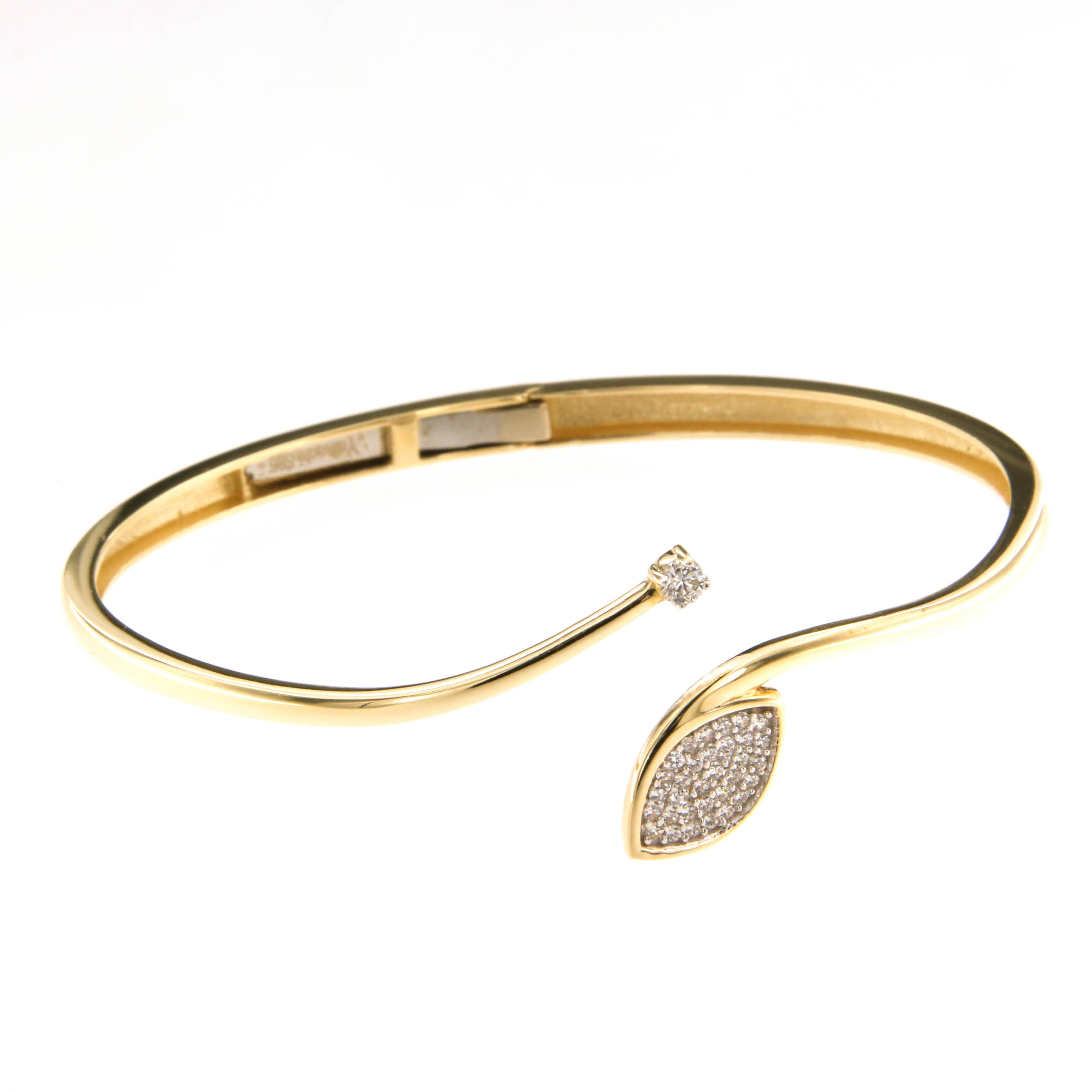 Твърда гривна тип белезник от “Jacklin hugasian” в жълто злато гланц цирконии.