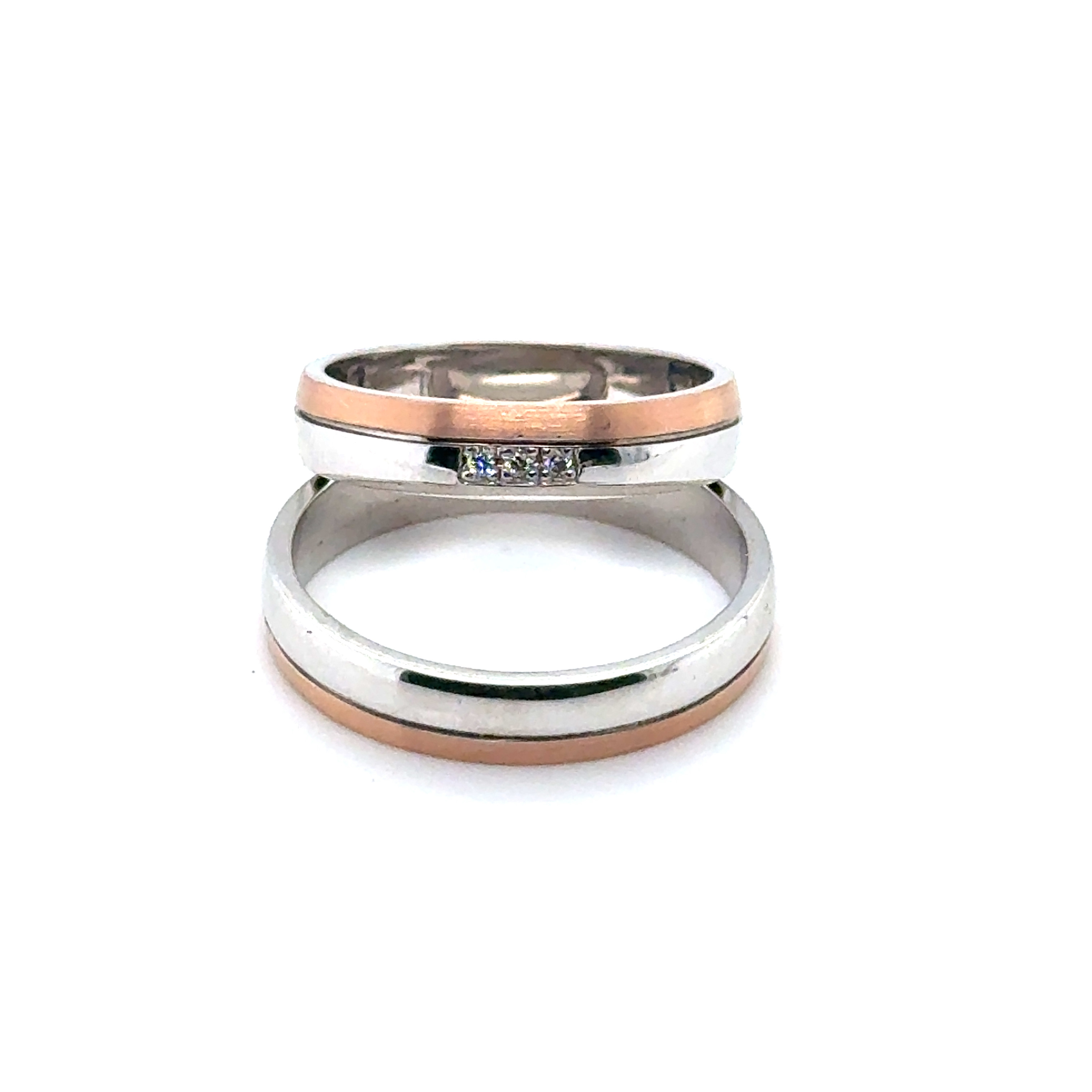 Венчални халки от "Jacklin hugasian" в бяло и розово злато с диаманти.